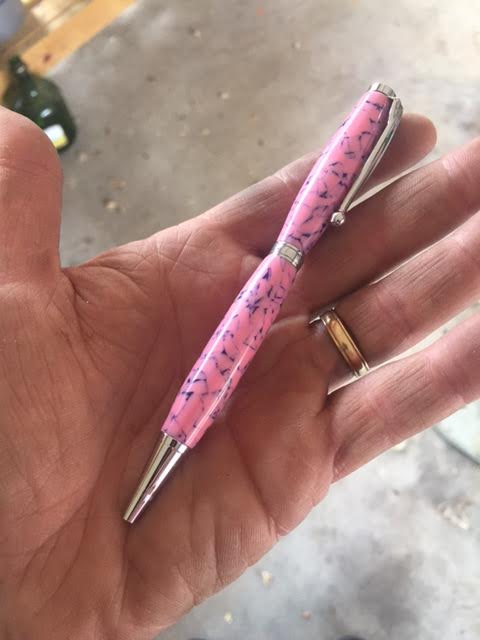 I had gotten this acrylic blank in a deal a couple months ago when I bought a pile of stuff online. It was already drilled with the 7mm tubes glued in. I was cleaning off my work bench over the weekend and found a slimline kit from a previous failure on the blank. Went and got this blank out of my box and turned it to day.