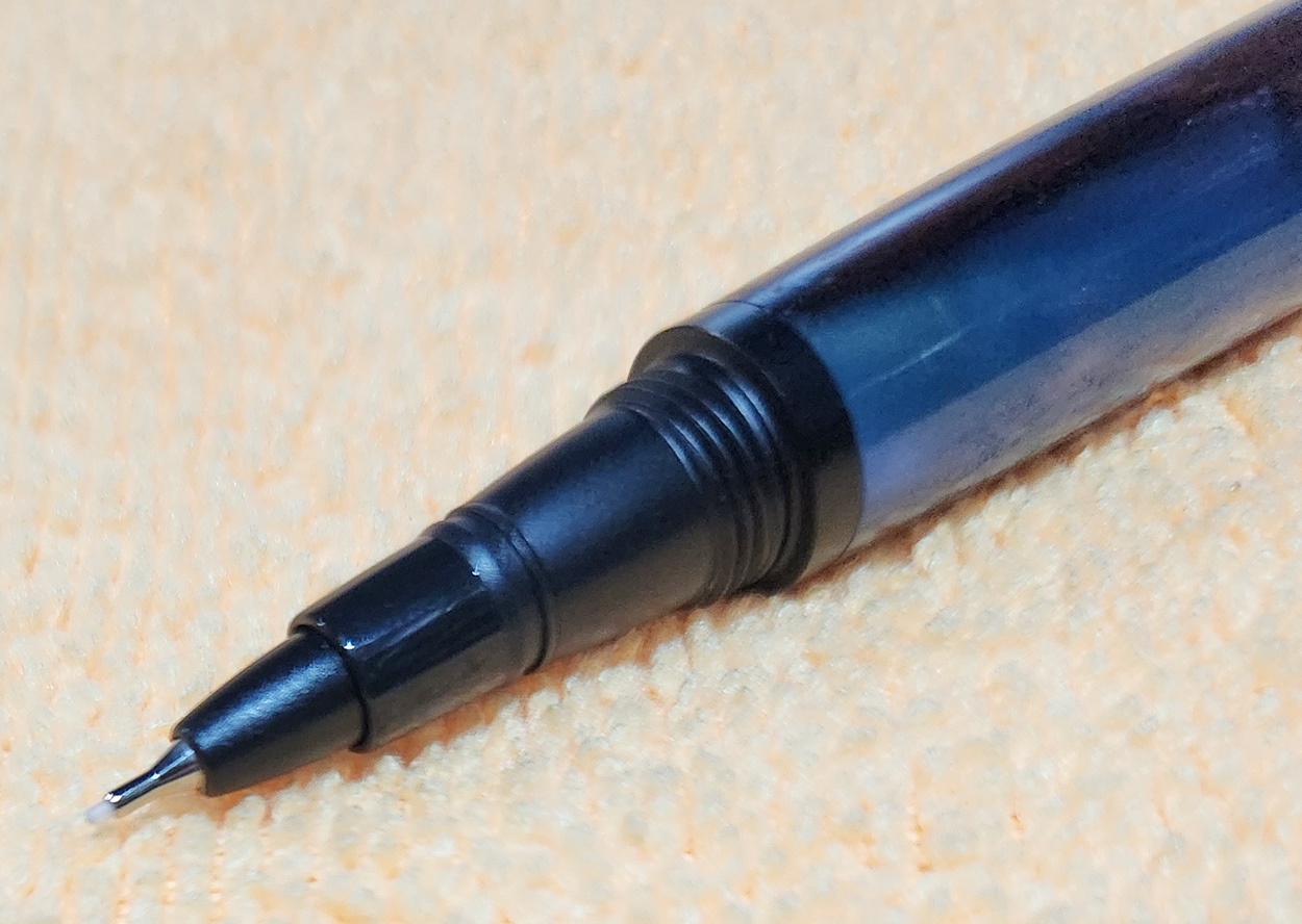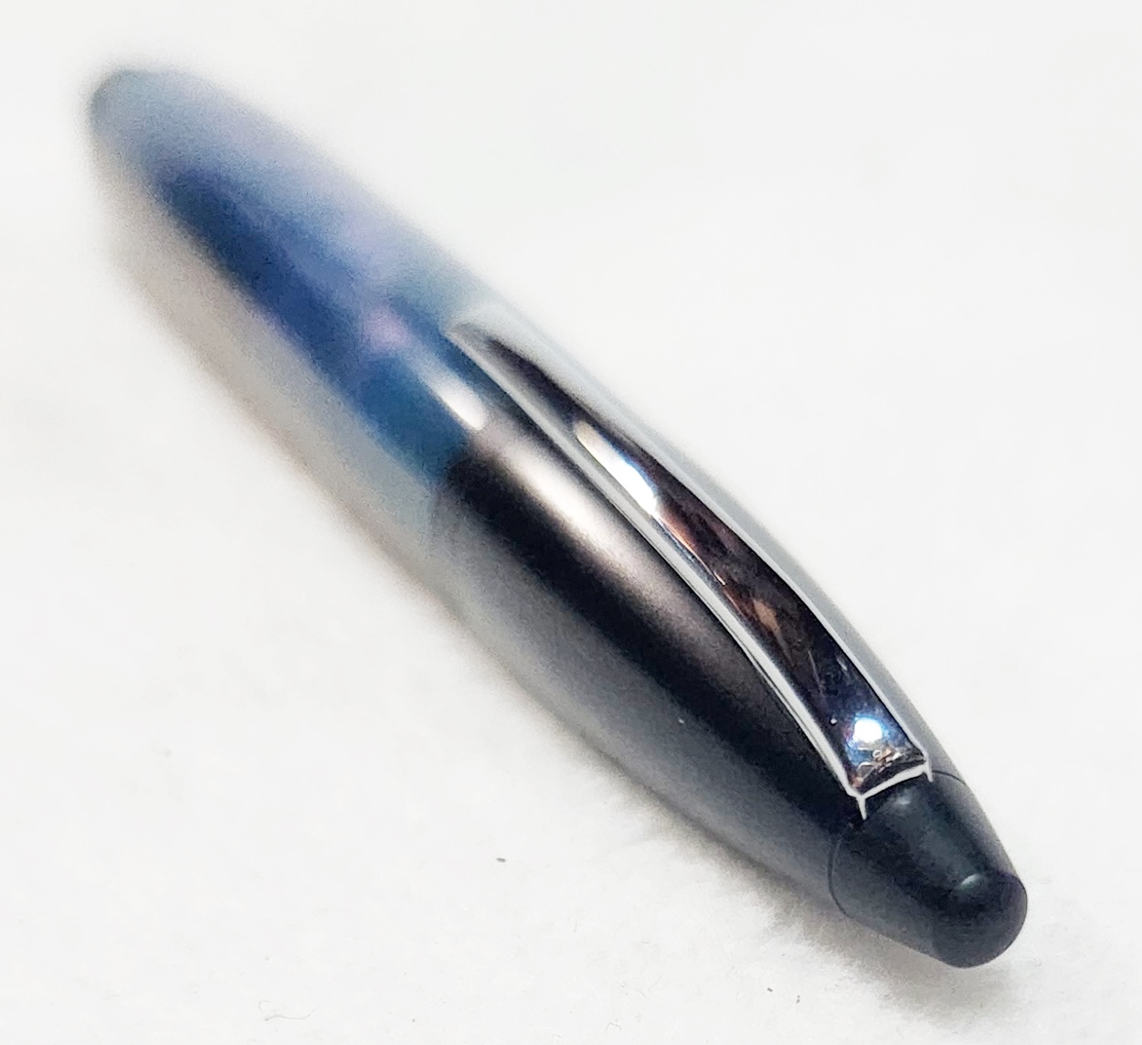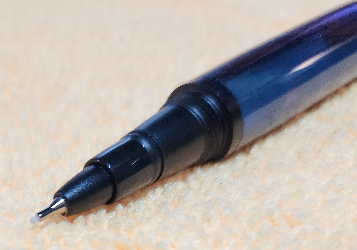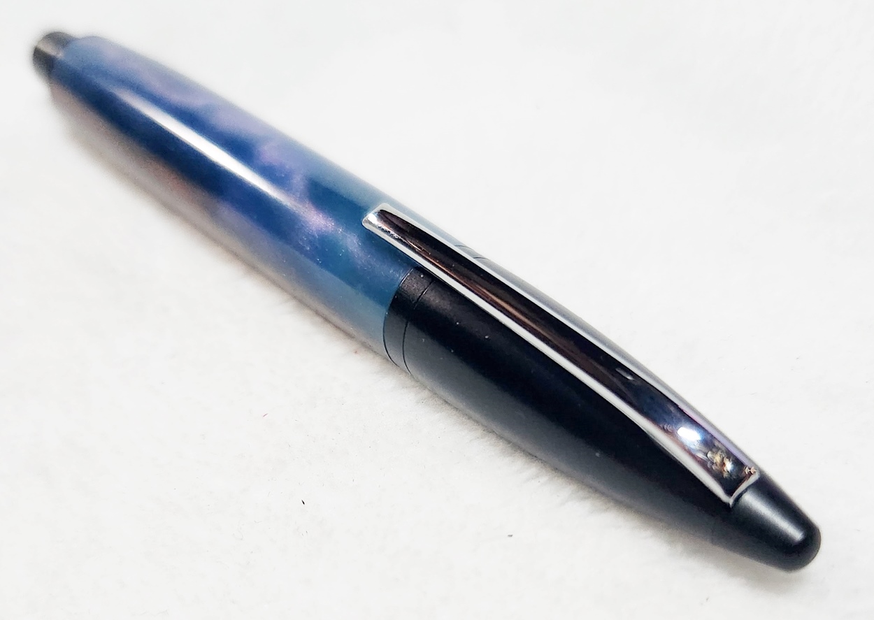 This is a PSI Fiber Tip pen in black. It's unusual in that it uses fountain pen ink, but has a fiber tip. The blank is a hybrid cast by my friend Dennis. I'm calling it Purple Prince. I dry sanded it to 3000, and finished it with Pens Plus.