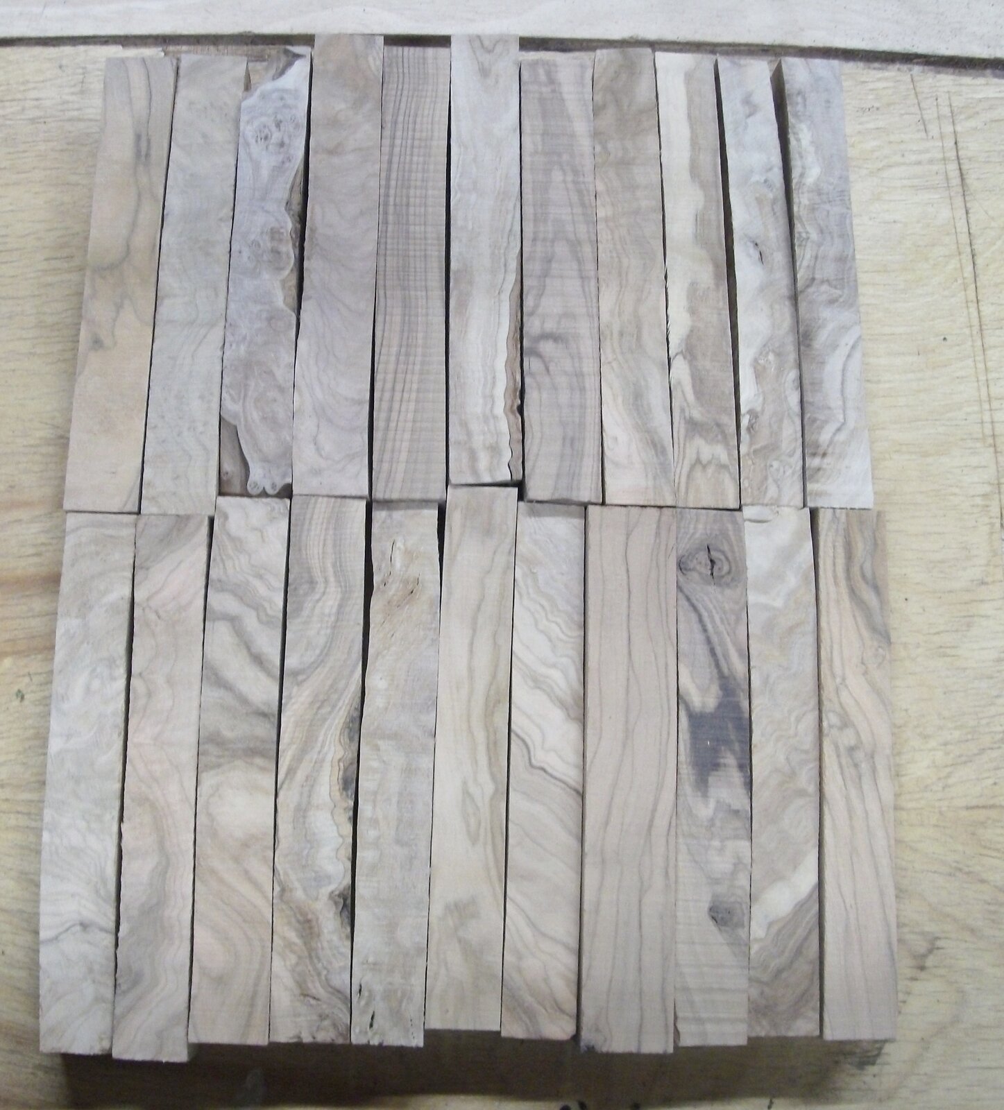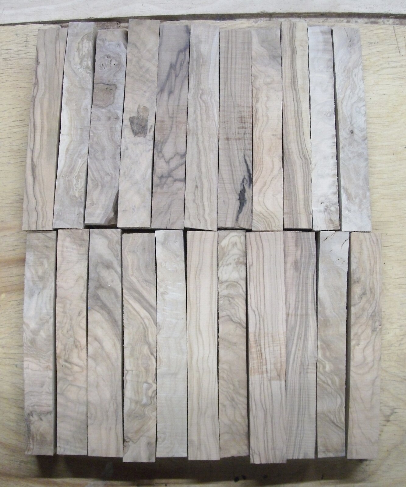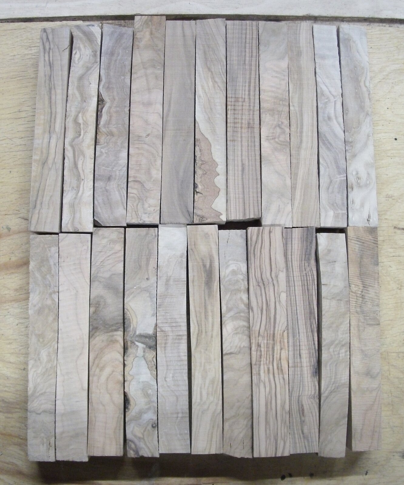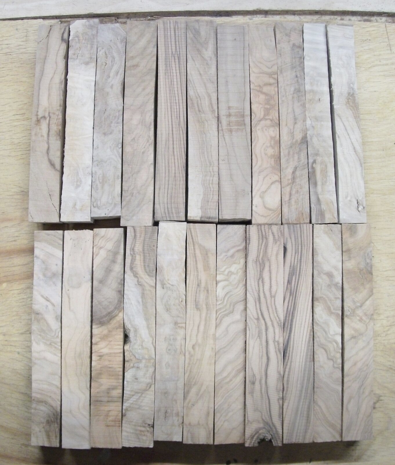 Closed - These 22 blanks fit into a small flat rate box. In the early 1900s there were olive groves in what is now central Phoenix. Most of the trees are gone, but a few remain. I collected this olive in 2008 after a large storm. The blanks measure from 5/8" - 3/4" square by 5" inches long (to fit in the box). In each photo I rotated the blanks 90 degrees so you get to see all the faces. Solid and dry. $50 for these 22, including shipping in U.S.