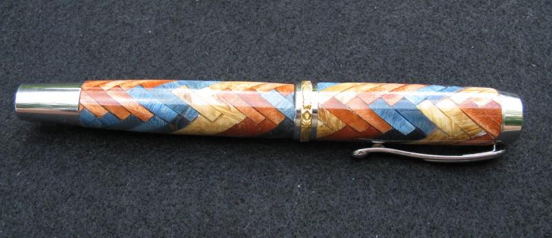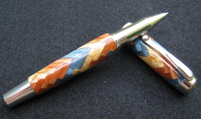 I haven't made a pen just for me in a long time so I decided to take a few minutes and do one. This is a copy of the pen that I sent to my ex-CO in Iraq. It is a platinum Statesman with a stabilized Herringbone 360 in red, clear, and blue. This one was a little nerve racking to drill out, but it was worth it. I put 12 coats of thin CA on it and then micromeshed it to 12000 followed by a slow buffing and the a touch of Renwax. This one is going in my pocket and I think I am going to keep it just for me.