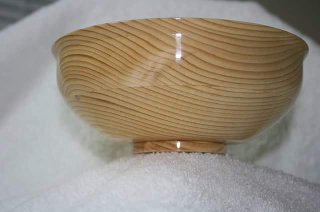 I put the last coat of finish on my second bowl this morning and parted it off the glue block this evening. I used 5 or so coats of WOP and I really like the look it gives. The bowl is about 3" high and 7" in diameter. I didn't finish the base as I'm going to cover it with stick on felt. All C & C welcome. Thanks for looking.