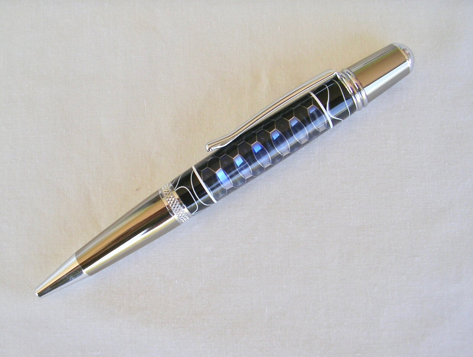 On the Chrome Glacia pen I used a piece of Elm Burl . I got this from an IAP member in Ireland years ago. I am finally using some of my hoarded blanks.