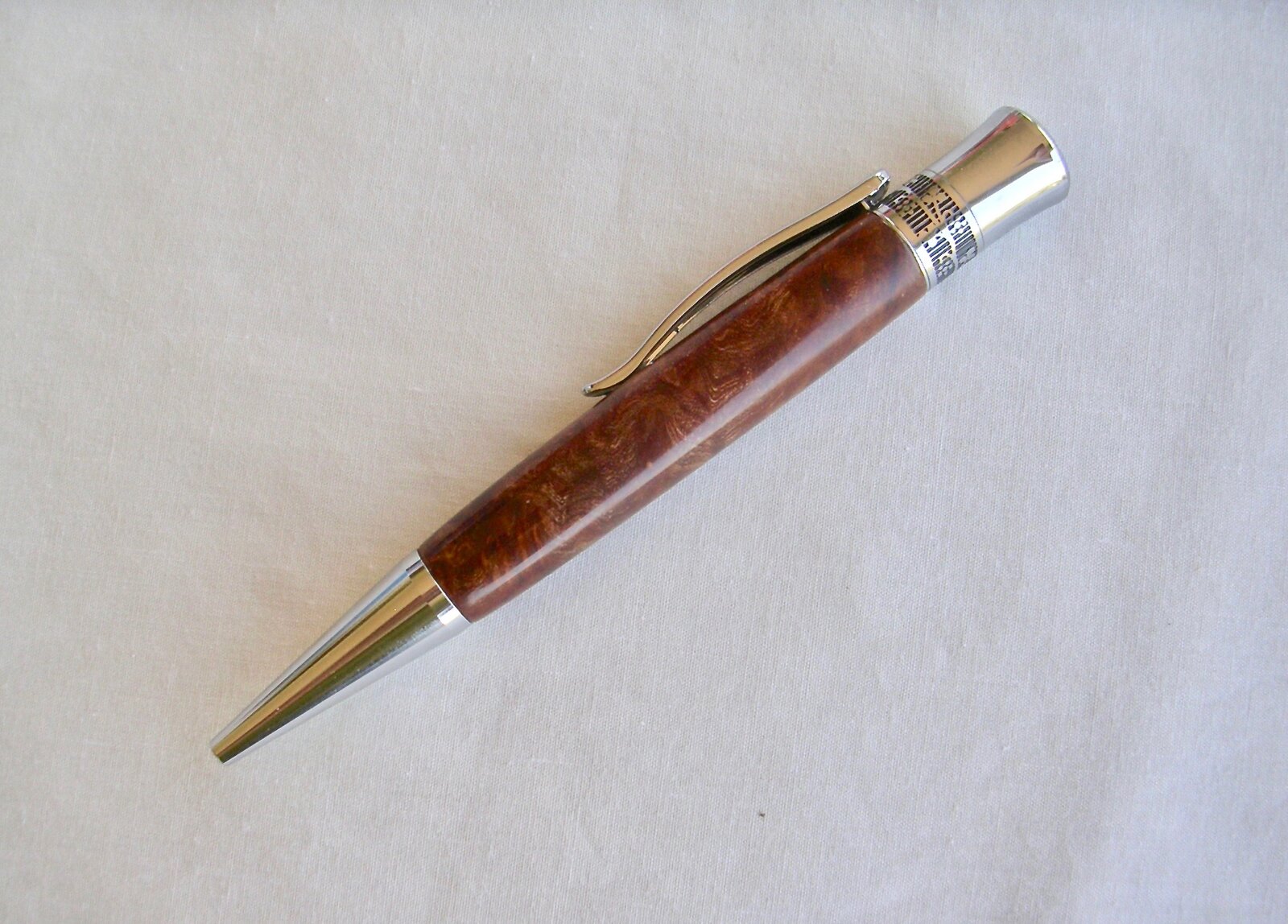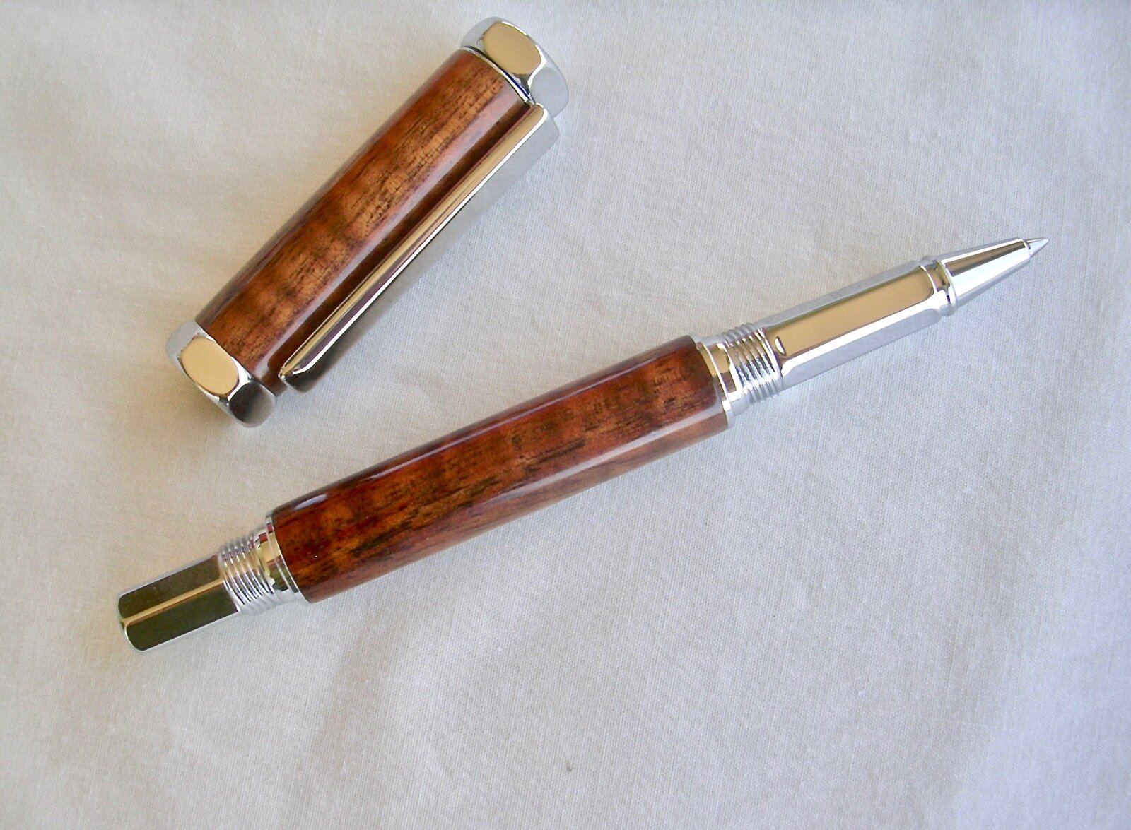 On the Chrome Rinehart I used a piece of Koa I got from a golf buddy that was stationed in Hawaii went he was in the Air Force years ago. He gave me a few sections he had leftover from making flag display boxes. I owe him a couple of pens out of the material.