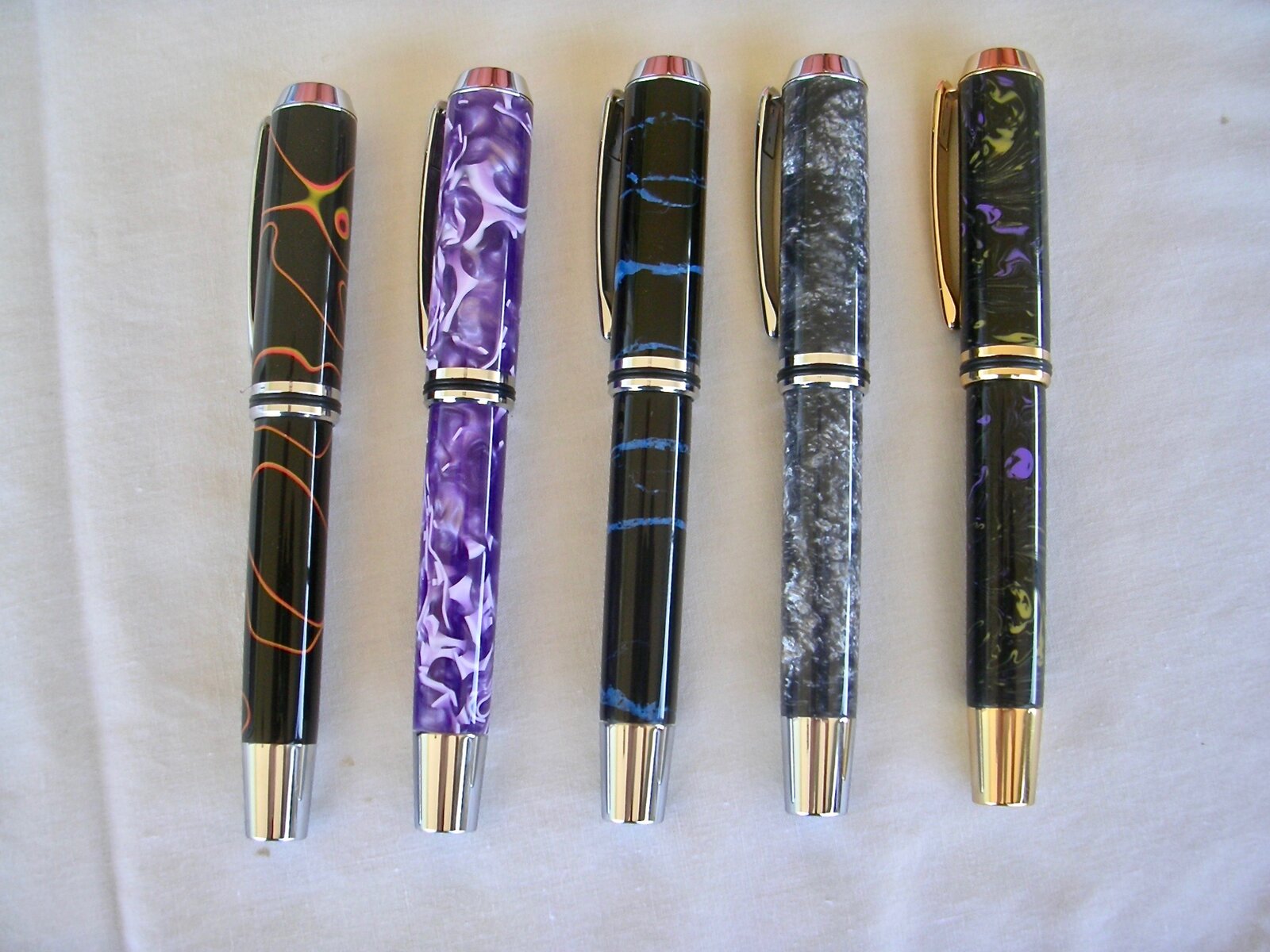 Blanks L to R : Berea AA-03(BTW) ; Berea AA-304(BTW) ; InvisaBlank Black/blue ; Unknown ; California Van Gogh ( old Exotic Blanks -gift from a friend )
