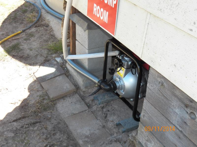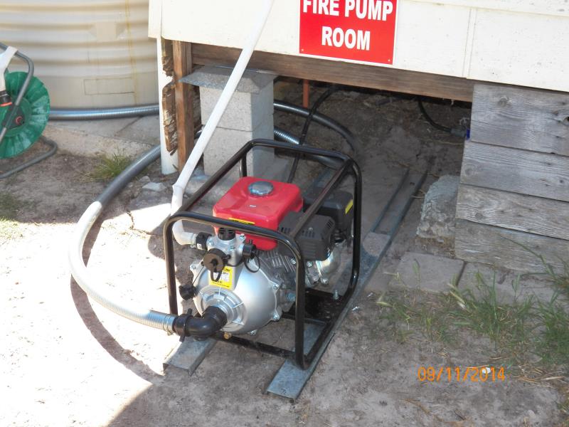 I manage to created a small area under the house and near the water tank where I could put the petrol pump, I used some metal U channel to make a sliding runner, making it easy to get it out in a hurry, far enough to access all areas of the pump, including the start cable.