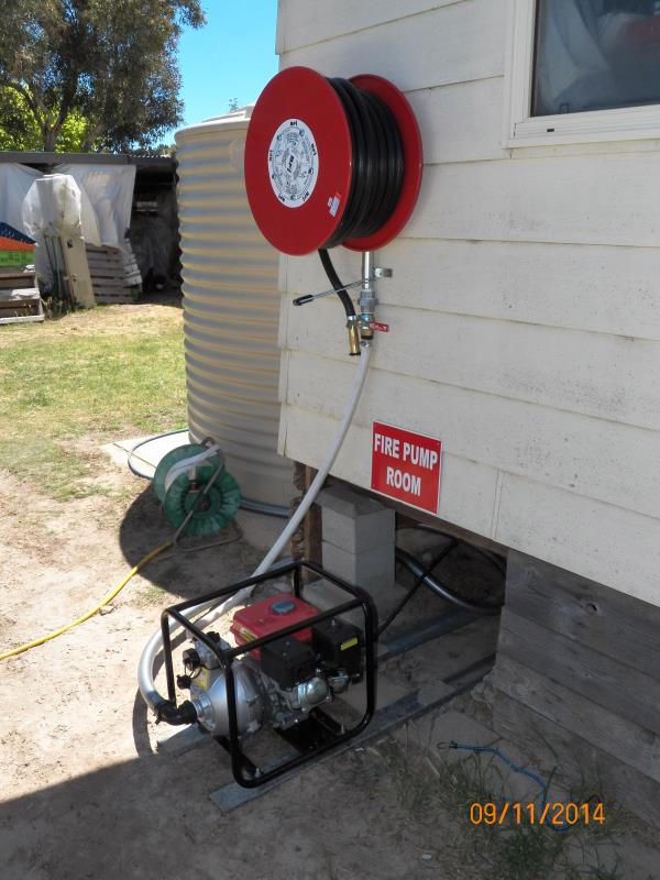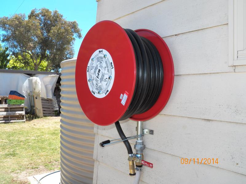 I got it finished last week, a few test did prove that the flat hose that come with the unit was useless in an emergency, these hose created far too many kinks and the water just can't get through until every one of those kinks is sorted, by then, would be nothing to save, it just takes too long before it can be used so, I spent another couple of hundred bucks, to buy a proper fire hose on a reel, the same ones you see everywhere in buildings.
