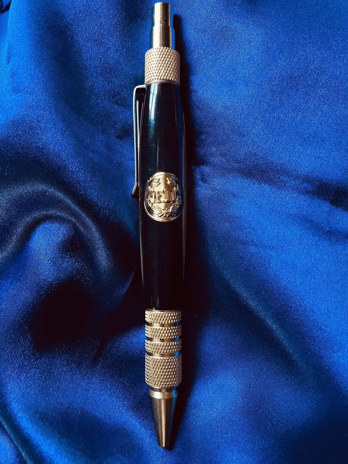 I made the blank for a friend of mine. He also turns pens and wanted to make his son in law a pen with a button that's on their jackets. The jacket is a Navy Blue so that's why the blue background instead of the red. Questions and Comments Welcome.