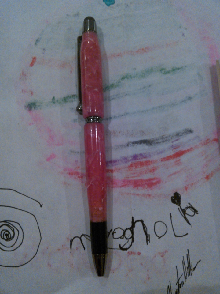 This was my first attempt at acrlyc today. Not reall happy with the results. I shoulda painted the tube i think, and probably picked a different thicker kit. Well looks like my little girl got her own stylus pen