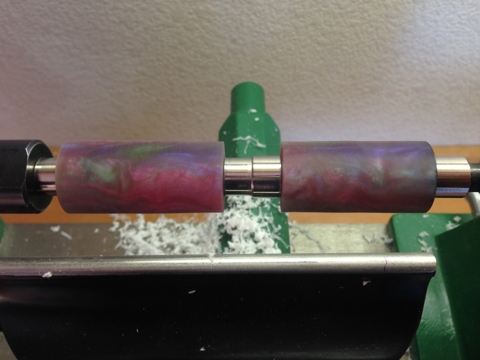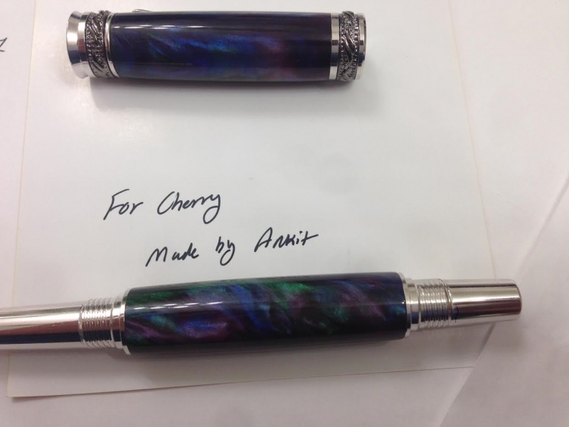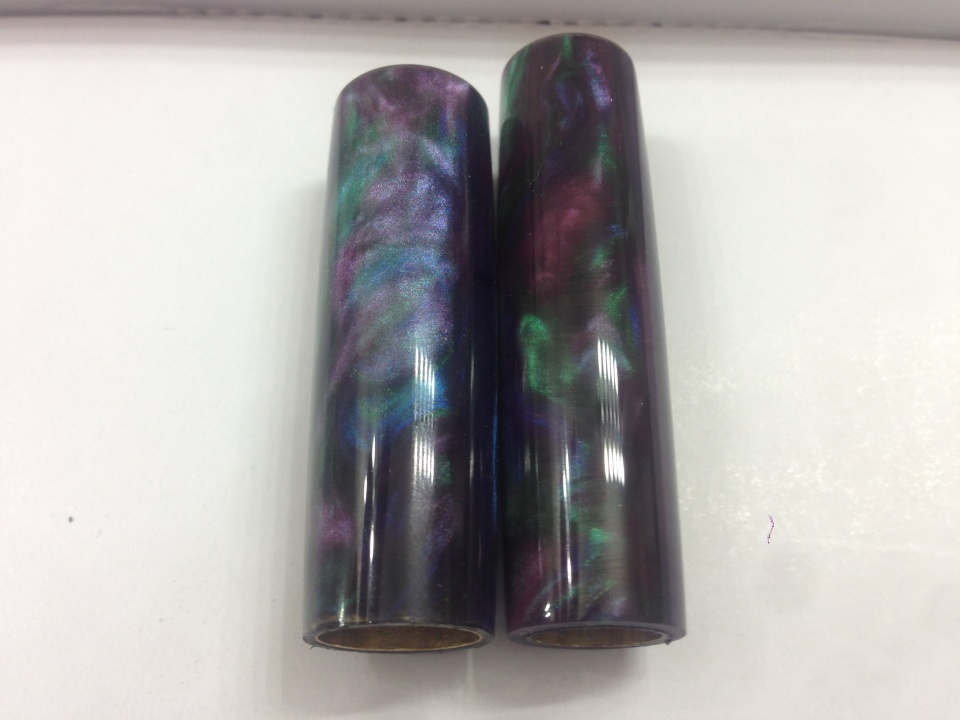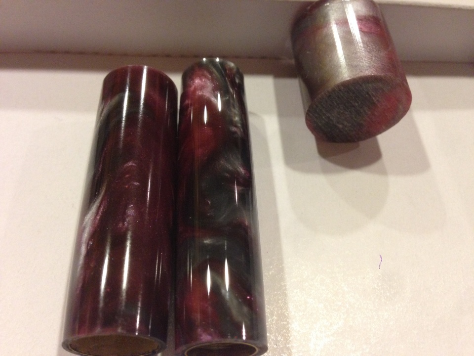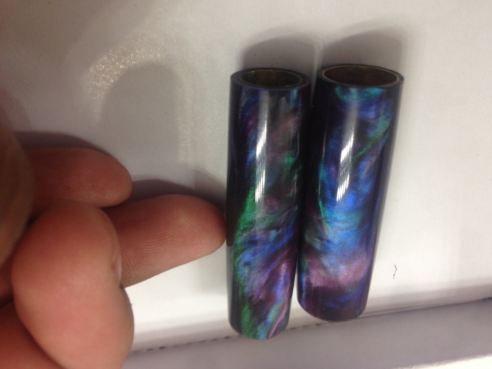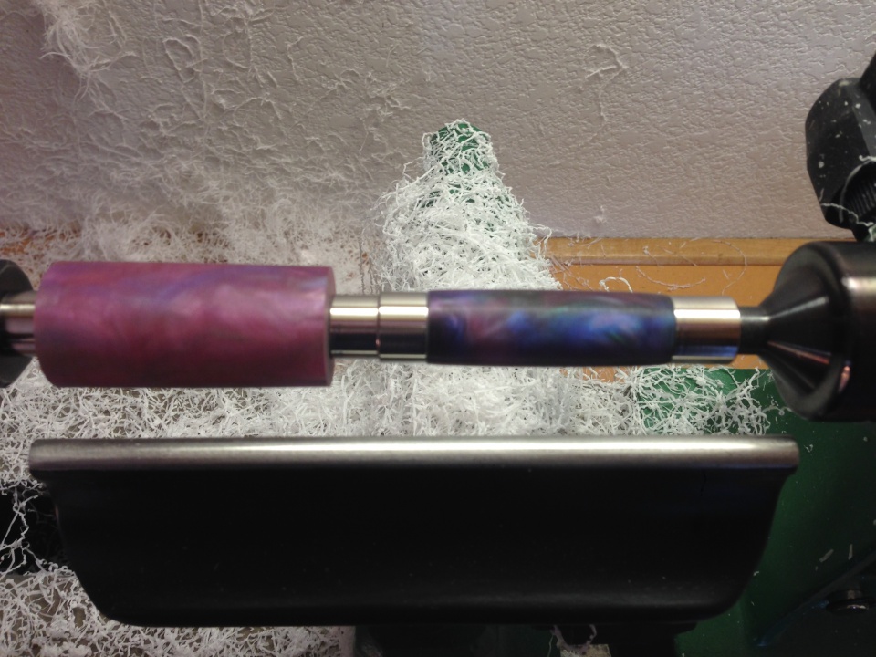 There are literally the first two things I had ever turned. I also poured my own blanks using PR and Pearl Ex Mica powders. I thought about starting with the slimline pens as everyone says those are the easiest to work with but the thought of turning a blank all the way down to that small size scared me so I went with a thicker pen and these were not too bad at all.