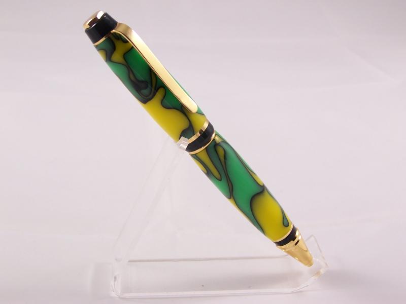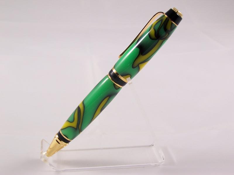 This is a pen i justed turned to see if turning up the speed on my lathe helped me turn acrylics easier, i guess it did it took me 1/3rd of the time to turn this one. I got this AA blank from woodnwhimsies. It is a chameleon blank, it think it is pretty cool. I turned this with 1/2 bowl gouge and 1/2 skew turned at 3100 rpm. after turning just went straight to mm. mm to 12k then polished with hut plastic polish that i forgot to shake up at first(i do this alot). Thanks to Ed and alphageek and rubypenturning for the advice!