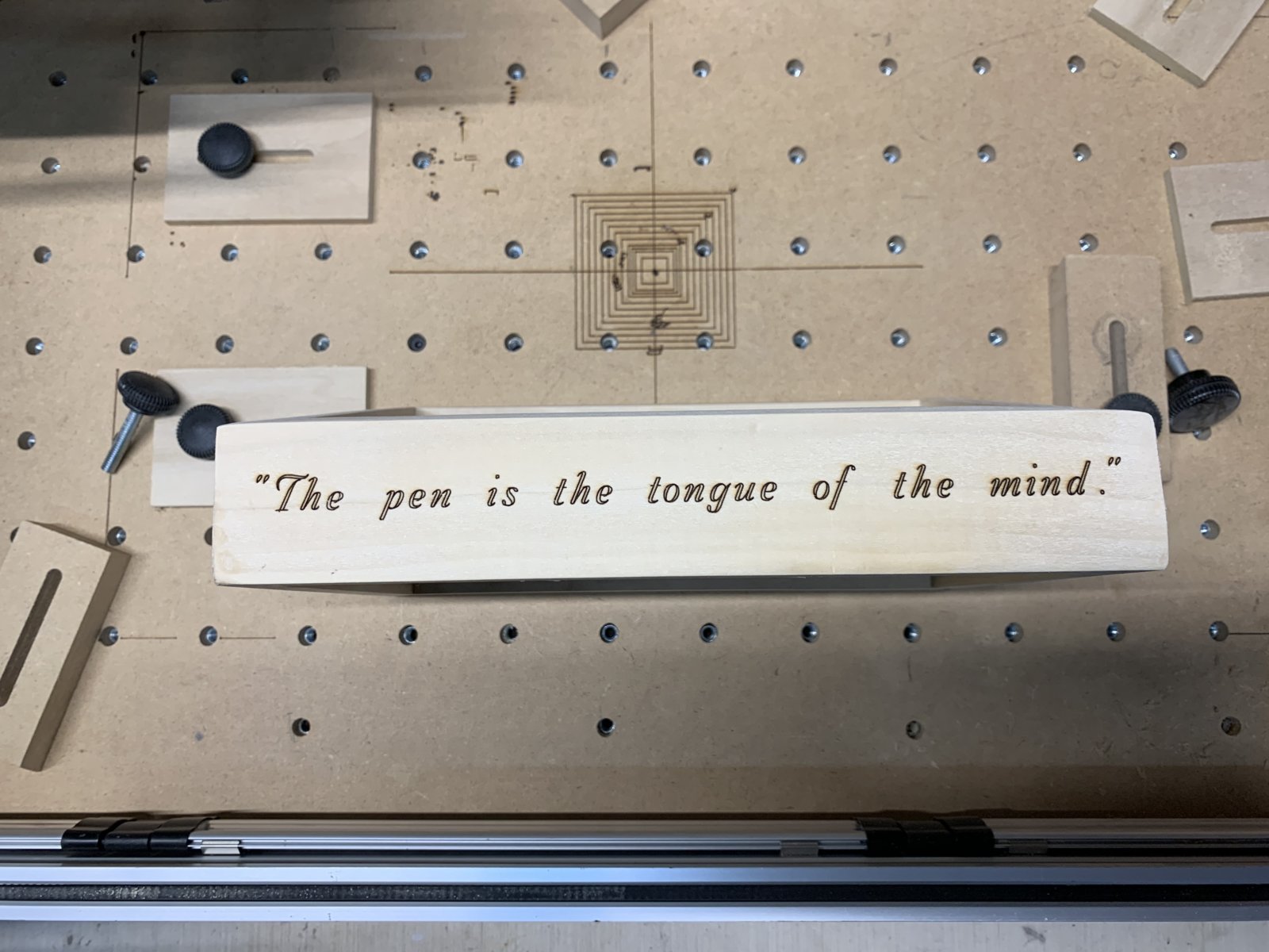 A glass lid would stop some dust and make people ask if they can pick up a pen to look at. My vote would be yes on the glass/plastic lid. I like the sentence on the side.