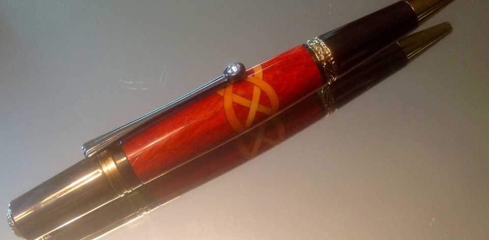 First an admission of my lack of visualization skills. How in the heck did someone figure out if you put four pieces of wood into four slots cut at an angle into a pen blank that the result would be a Celtic Knot? I just cannot wrap my mind around that one.