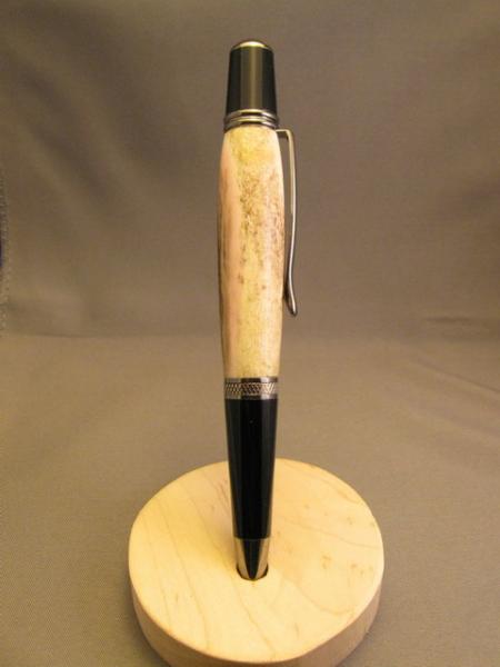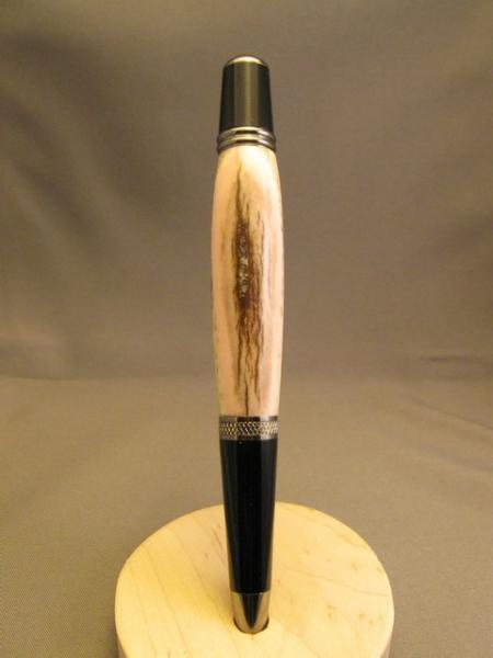 This is my first antler pen and it was more a pain to try to photograph and I am still not happy with the results. The smell, well I had no issues but then I had a fan blowing right across it when I was turning it and such. Let me know what you think please and ideas for photo taking of antler, I kept getting a glare off the white of the bone and finally got most of it gone. There is a little bark left and it has a pink tint around it which loml likes.