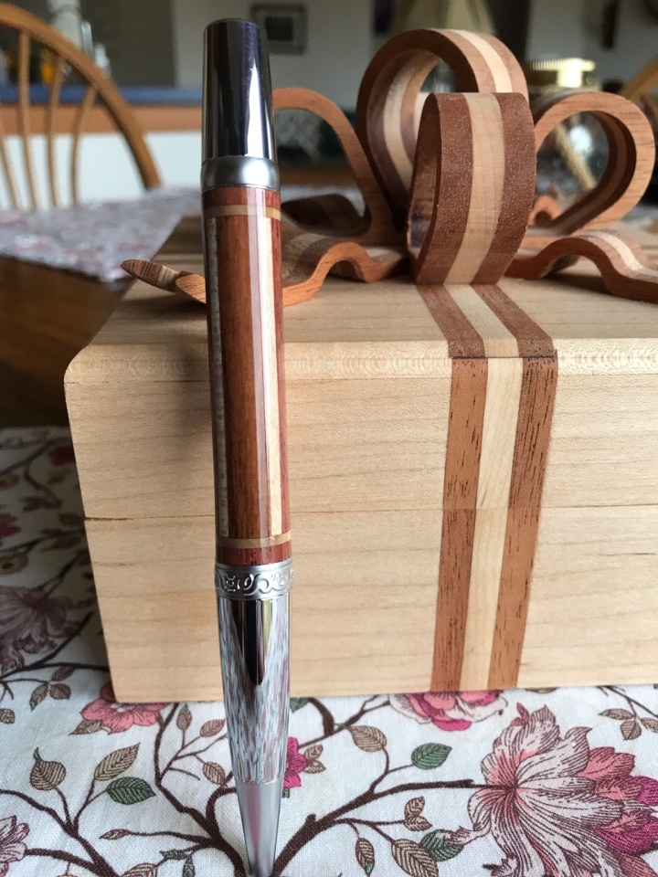 While the Pen is the Object of the Photograph, That Magnificent Segmented Box, and Wooden Segmented Ribbon, takes all the attention of the viewer.