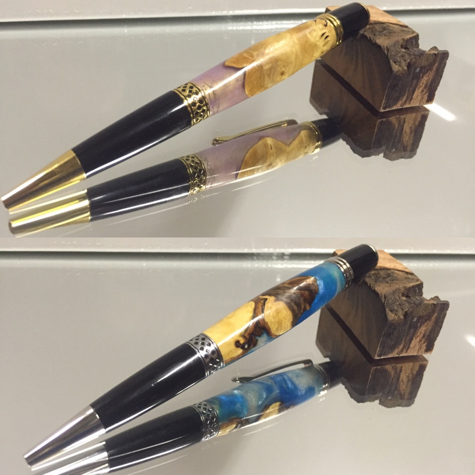 Have had these blanks for a few months but was unsure exactly how to finish them being wood and acrylic. Finally found some advice on here about wiping with BLO and then finishing with a CA application. I grossly underestimated the transparency of the purple blank and am a bit embarrassed at my folly as I am usually very careful to back paint the blank hole either black or a similar color as the blank. Have another one made up ready to go that I back painted the blank hole black. Will see how that one turns out!