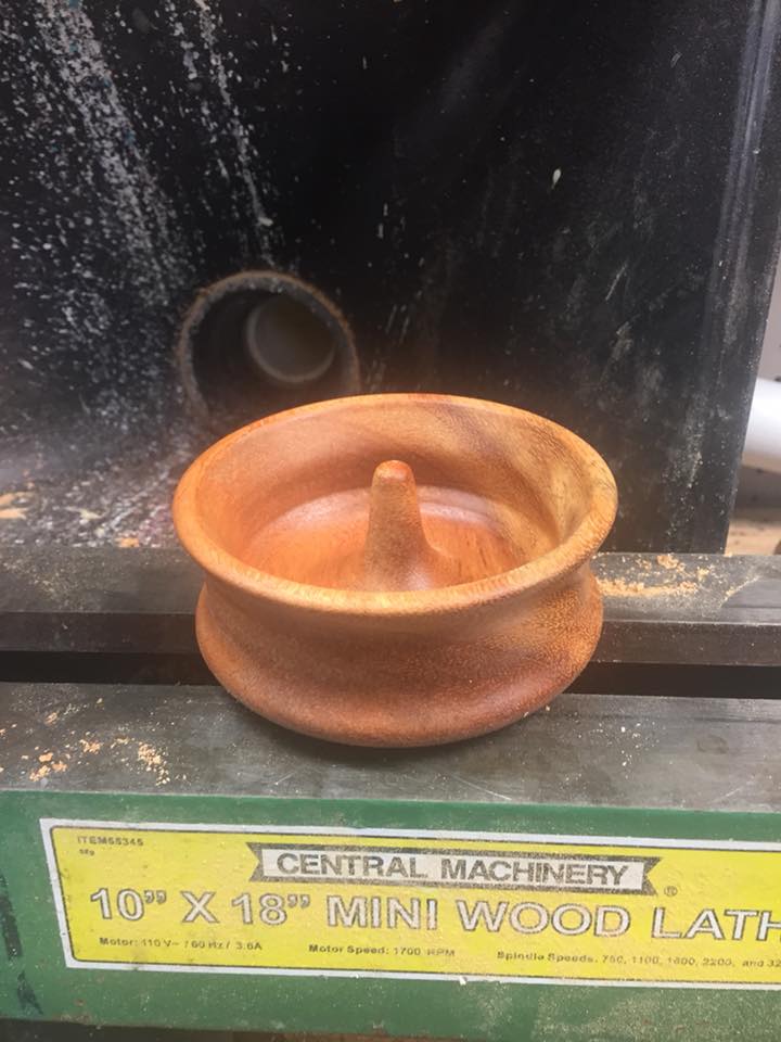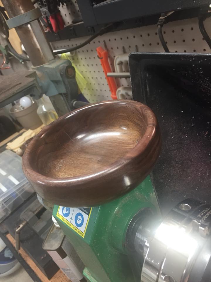 I decided to give bowls a try. The first one I did was out of Black Walnut. I was no giddy that it did not explode and I survived with all of my digits intact! Well that let to another one. I turned the second one out of monkeywood. It is my (have no idea what I am doing) take on a ring bowl. I determined the limitation of my little lathe also. I had an absolute blast turning them.