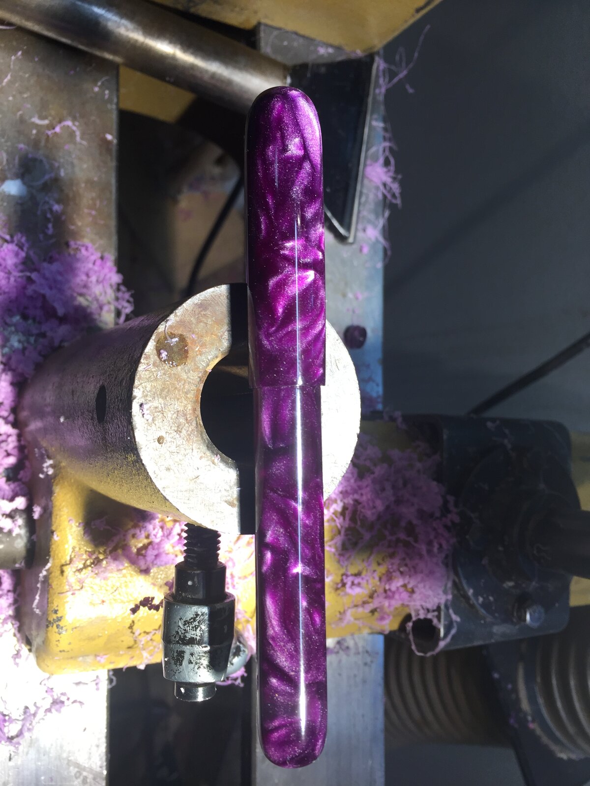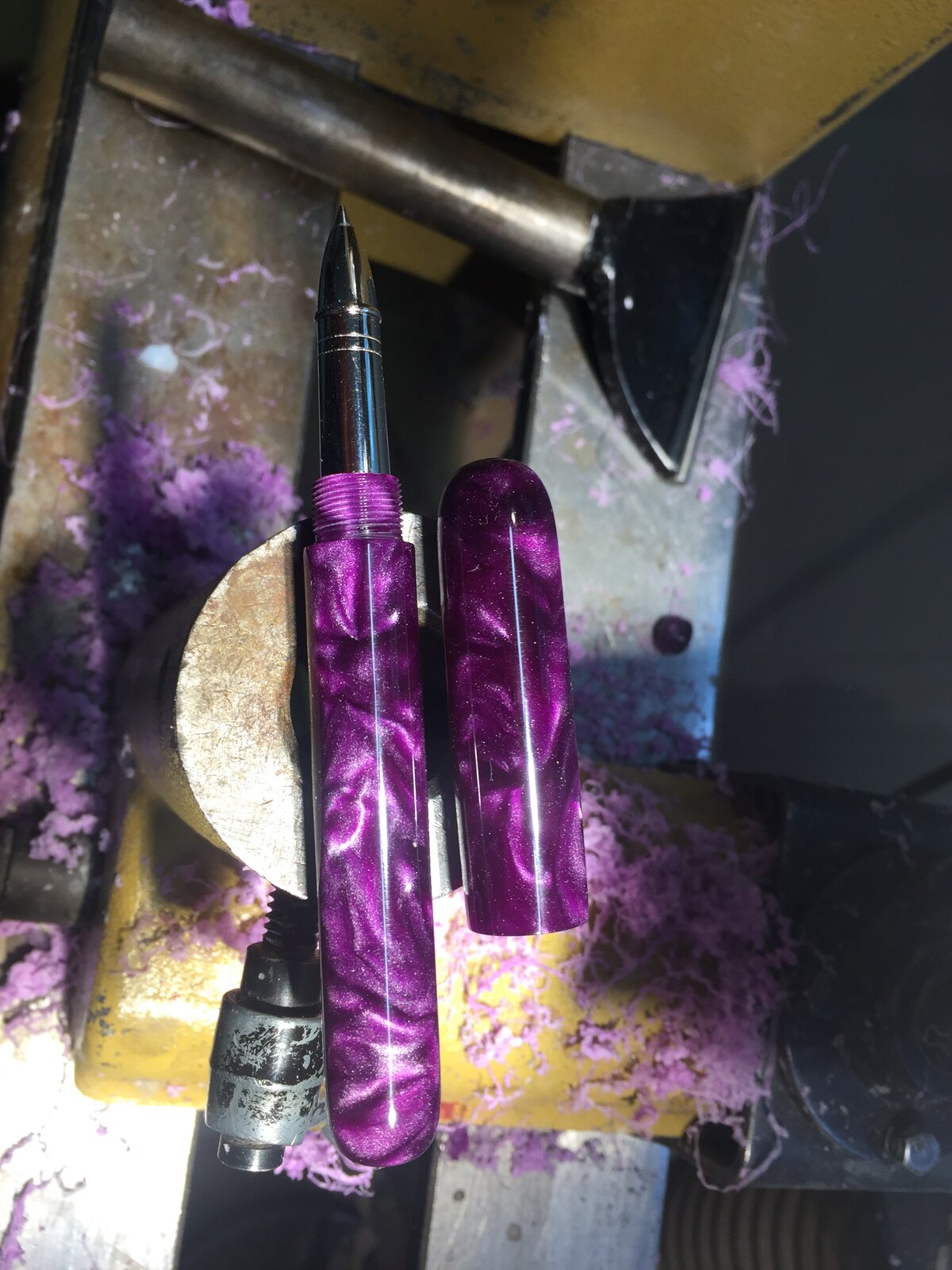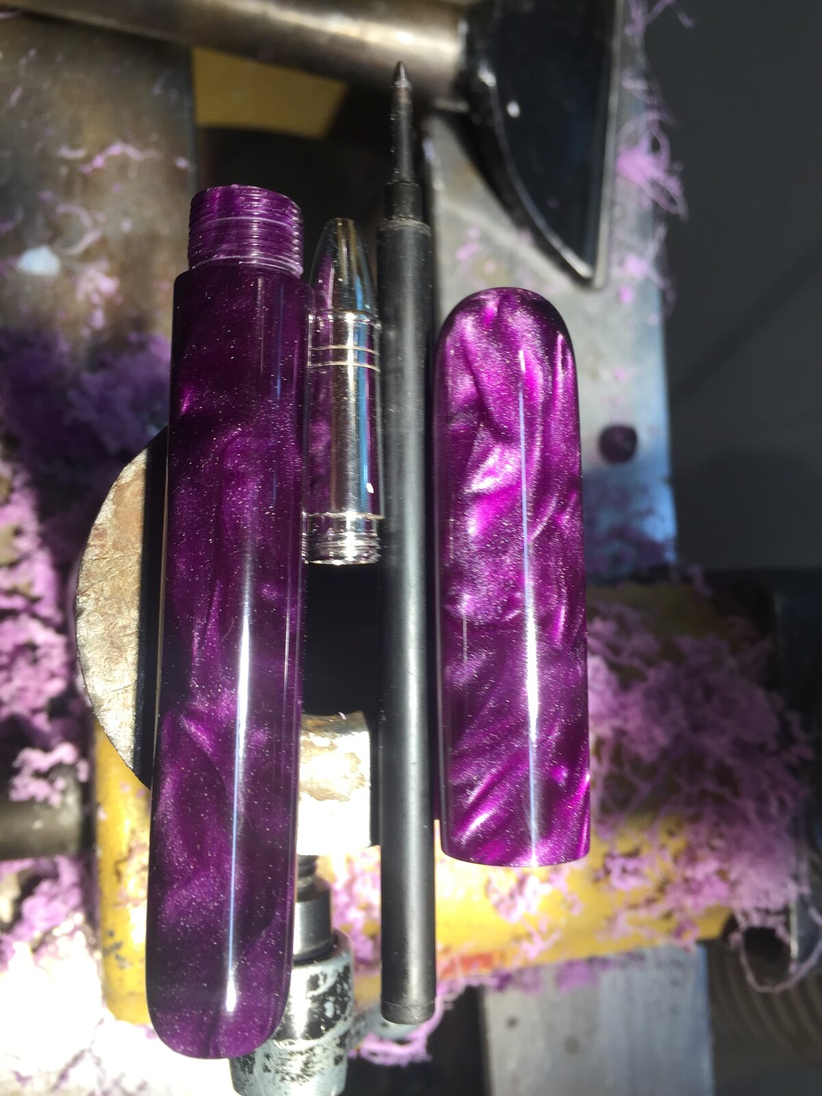 The colour is awesome I know nothing of bespoke pens but this one looks great.First Bespoke. Used a rollerball nib from a kit. 8.5x1. 12mm on body and cap threads. Acrylic. I did remount the cap and take a bit off the rounded end.View attachment 309904View attachment 309905View attachment 309906