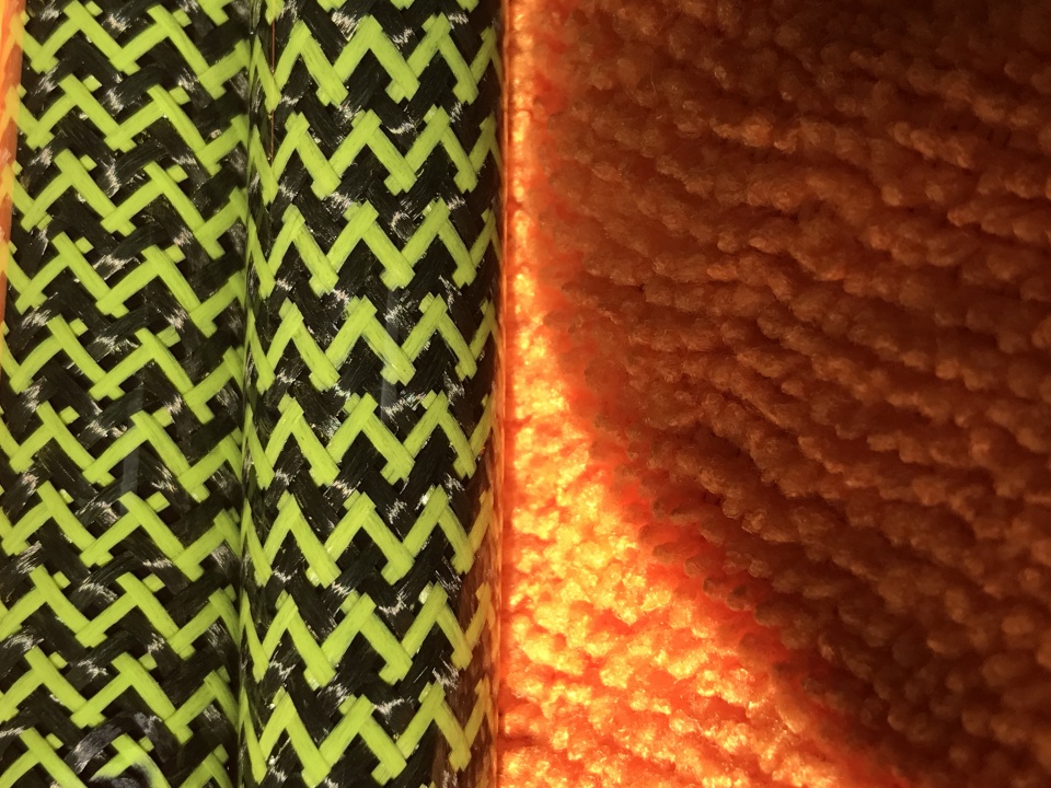 I cut the CF or braiding if doing braiding blanks to size. I mark the inside of the tube with some sort of code so that I know what tube is for what kit. Need to do this if you are mixing kits. I slide the CF sleeve over a rod. I then slide a tube over the rod. I hold the edge of the tube with my thumb and spread the resin all around the tube using one of those flux brushes you buy in bulk from HF or wherever. Always brushing the resin away from the ends of the tube so that none gets inside the tube. (if some does it is always easy to scrape out with a exacto knife later. No big deal) I then slide the tube into the CF sleeve as I am expanding the sleeve. Now I use small tie wraps to sinch the ends to the rod. I keep the tie wraps to the farthest part of the sleeve and not up close to the tube. This lets the sleeve material stretch nicely around the tube. I then put the sleeve tight on the other end and cinch it as well.