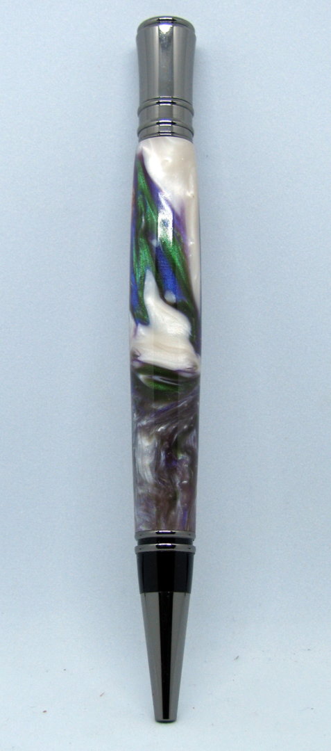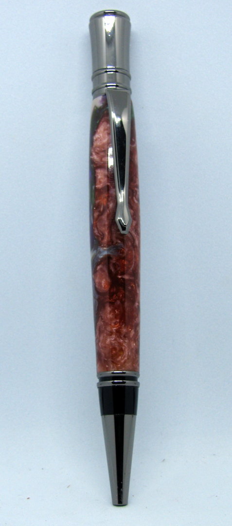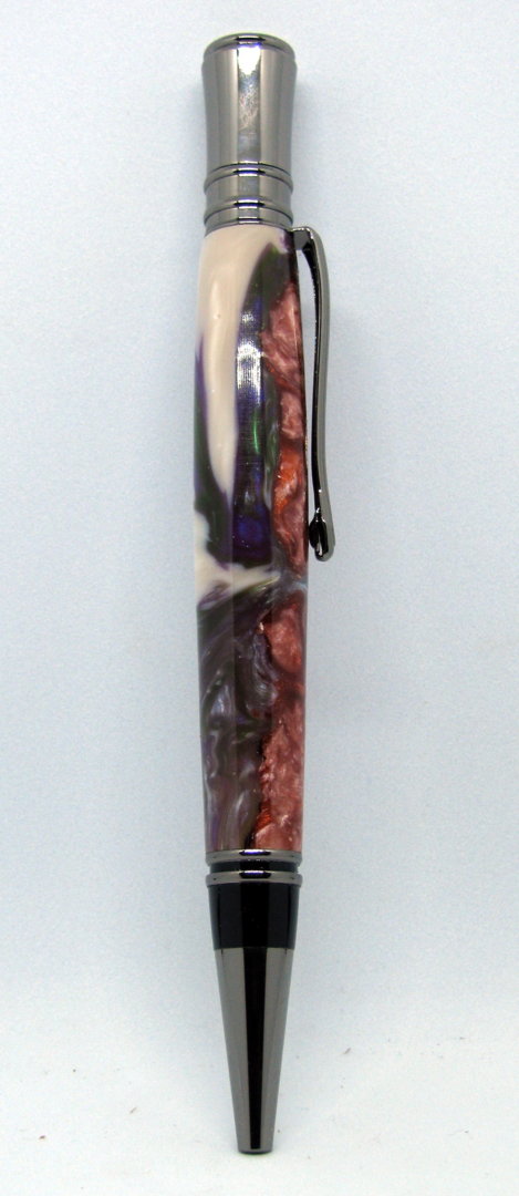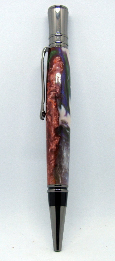 I tried casting several years back and basically I really sucked at it. On my Group in Facebook and in here I watched some videos and looked things up and this is the first pen from my casts i did yesterday. I kind of messed up and did not measure the acrylic when I poured it and then found I did not use enough for my mold I made yesterday and with that mold I understood the importance of having the mold sit in a container if it leaks which of course mine did but just a little so now I think the leakage may have sealed it but will not take any chances in the future. This was a 4 color flip cup pour and the reason there is a copper is because I needed to hurry up and make some more to get to the 3/4 inch level, next time measure then pour (note to myself). No pressure pot used.