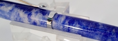 blue pigment, mica powder and pearlescent powder. (on an atrax rollerball, shoulda been a fountain pen but i ordered the wrong kit, i might change it)