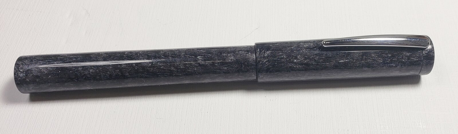 I made a few blanks with Alumilite Clear Slow with Caster's Choice mica powder...pewter I think. The blanks were practice blanks for adding clips. I finally had a successful clip and I liked the blank so I completed the pen.