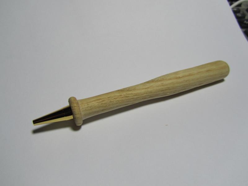 I turned this as a test of my thoughts on how to do a one piece closed end pen. To date everything I have done has been regular kits assembled as the manufacturer thought they should be. This is just a test project; the proportions are off for a baseball bat and the wood is some scrap I had around and isn't finished.