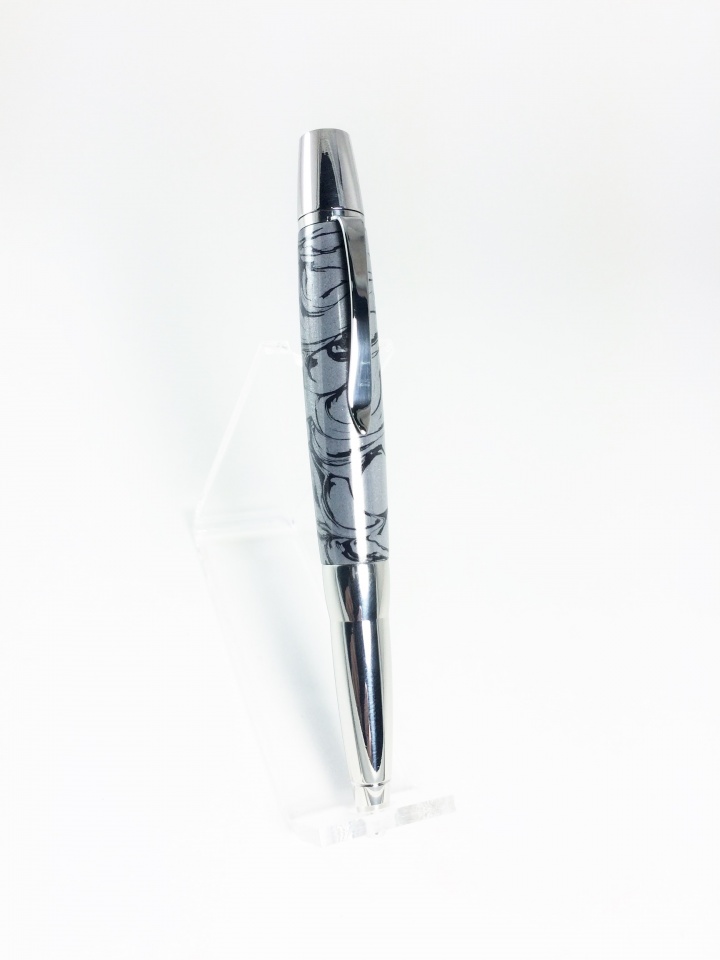 Looking forward to making many more. The blank is black and white M3 titanium - actually looks grey. Maybe the blue light is needed to may it look white. Anyway, I think the SS Falcon and the black and whatever color/shade was a good match. This is now my new carry pen.
