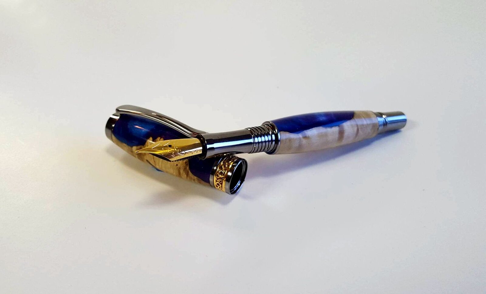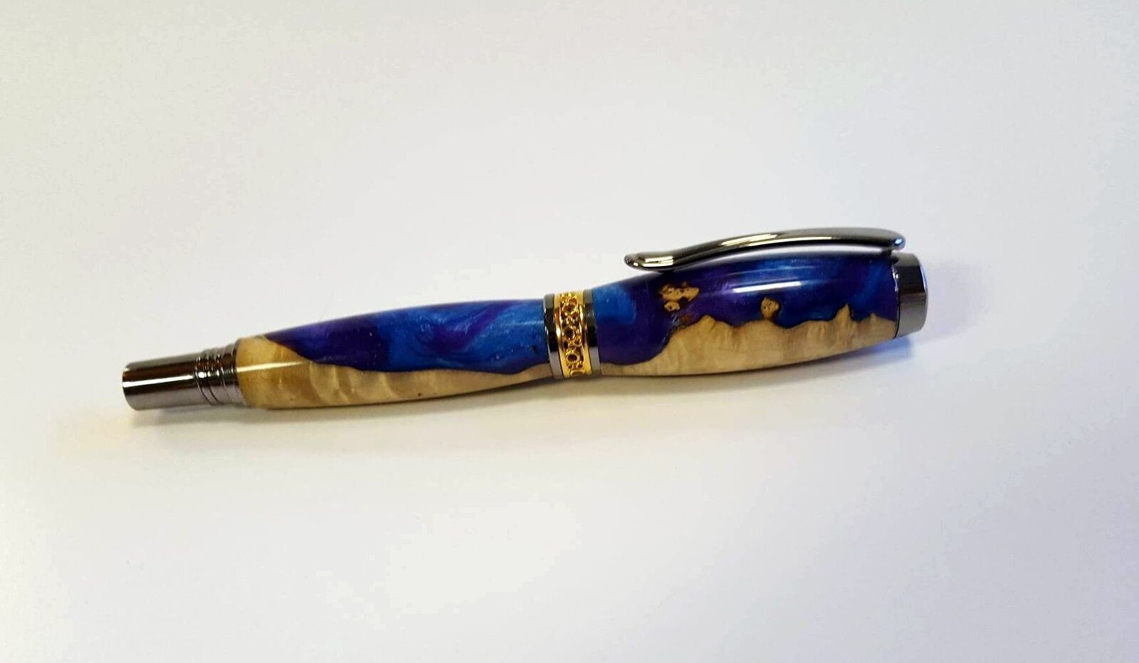 Jr. Anthony Fountain Pen Kit - Black Ti & Gold Amboina burl/acrylic mix (Earth and Water)A going away present for a friend.