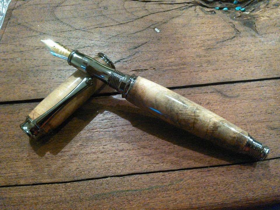 well i got brave and turned my first fountain pen, it is a peice of edge grain spalted magnolia that Edgar "edohmann" gave me a few months ago. I was really nervous that i would blow it up but finally got the courage