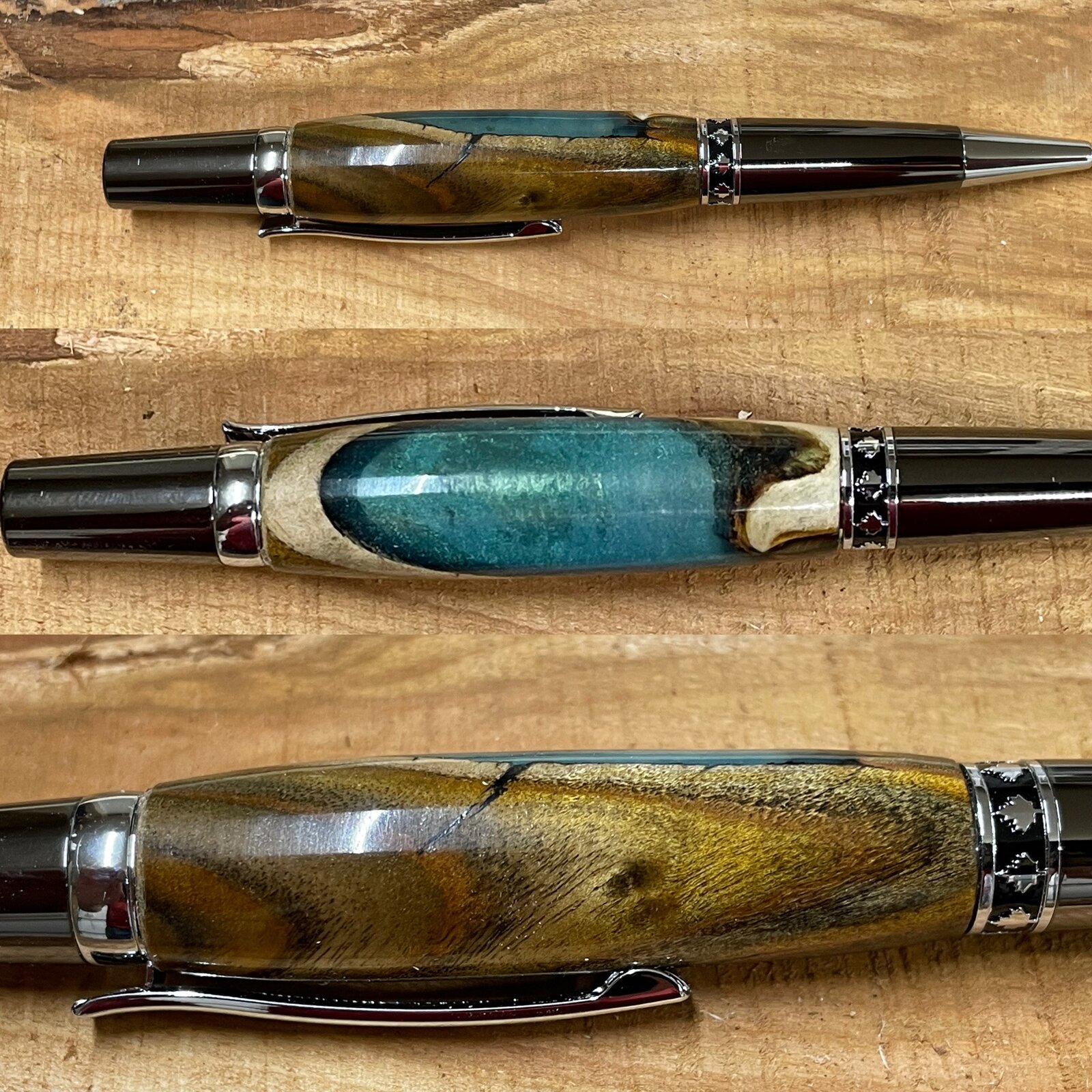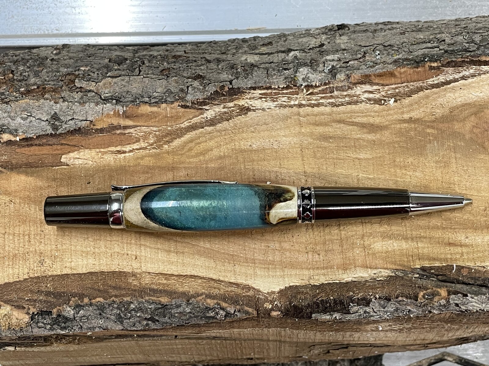 I bought a new vacuum pot and pump with the proceeds from a couple Christmas sales. Built a box for a piece of sumac that was too big for one blank but not big enough to cut down- and had cracks. Poured some epoxy in and vacuumed it gradually up to 29. Made a nice blank.