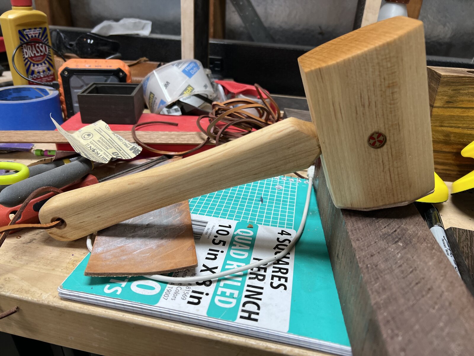 Tried my hand at a mallet. Hard maple finished with BLO. 11 oz leather on one side of the head. I didn't do a edge to keep the handle in so I used a knife pin to reinforce it. On the next one, I'm going to try the wedge.