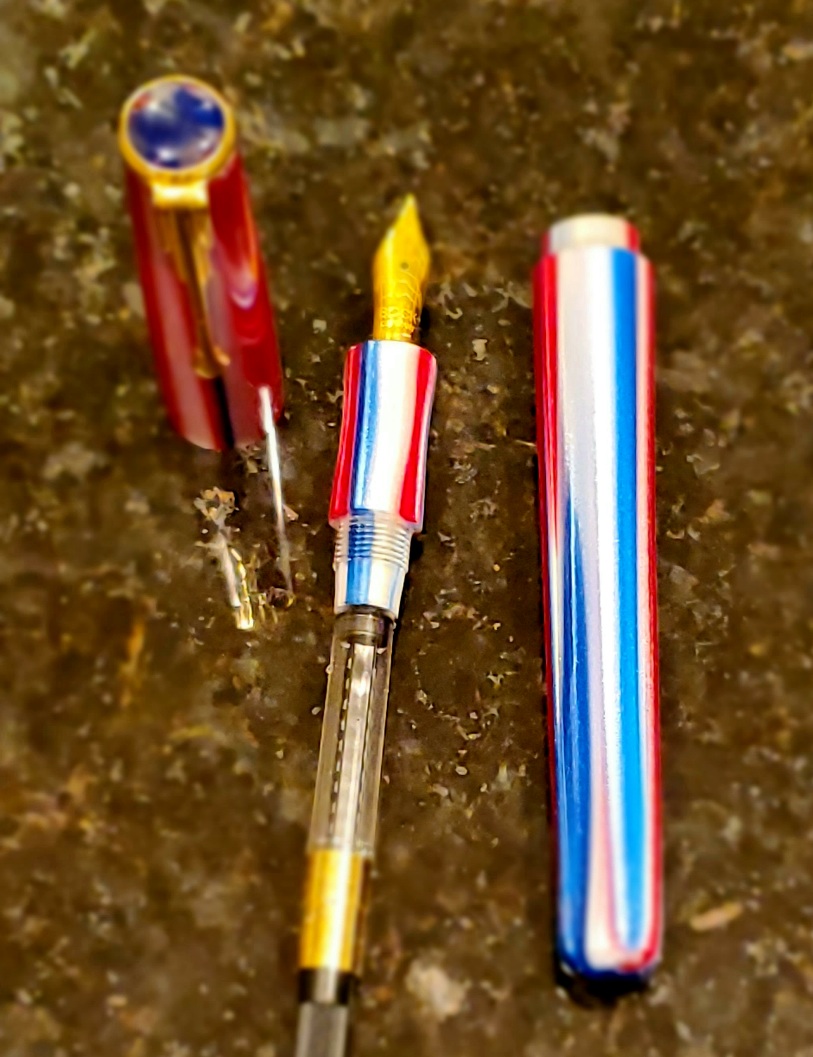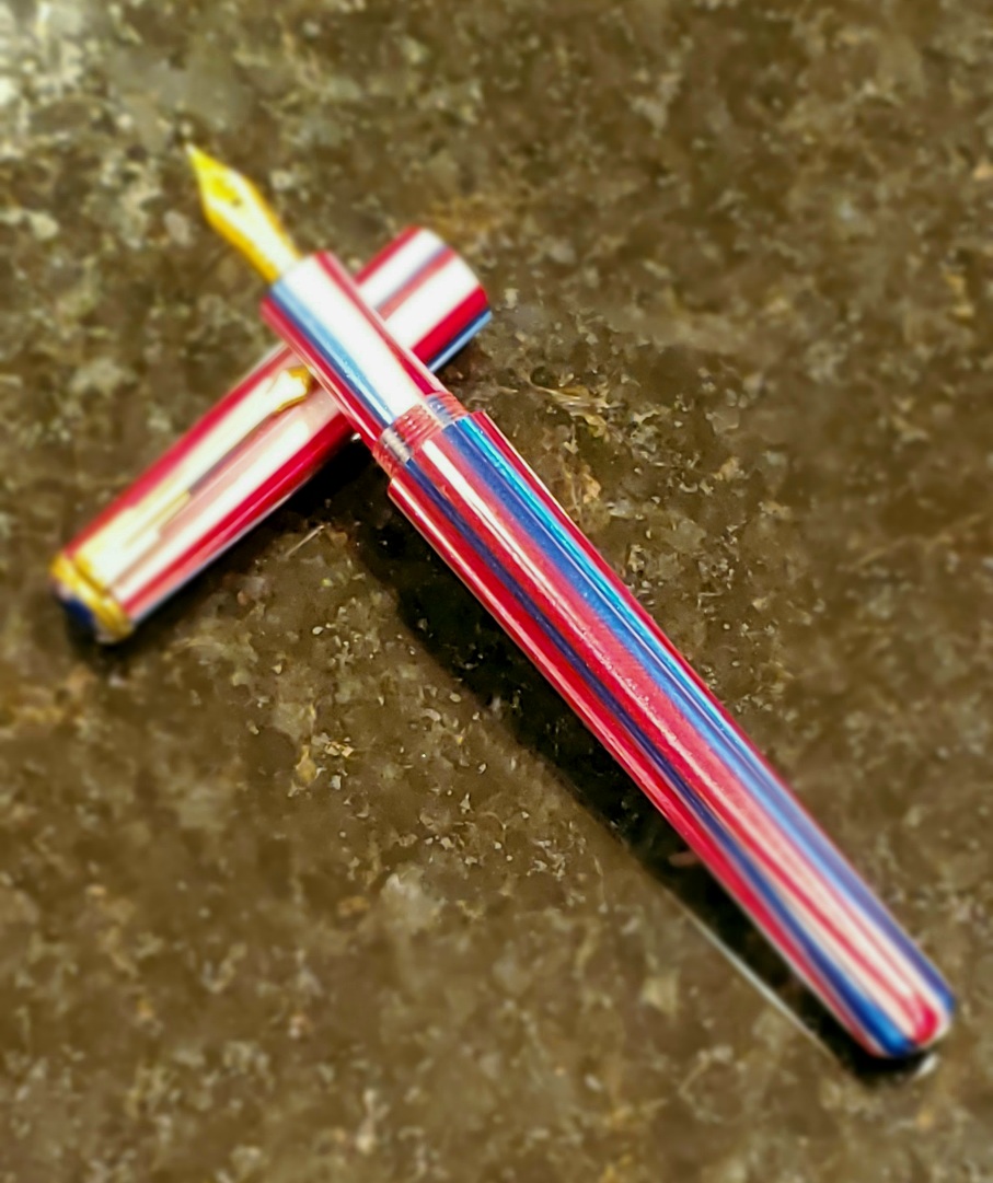 The pen is made with a Bock #5 nib. I used a 12mm single start for the cap treads to keep the color pattern properly aligned when closed.