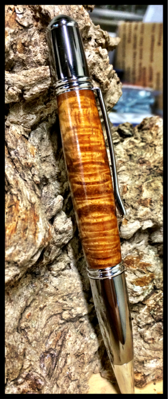 I was gifted some wood from Rodney in Hawaii. This is the first pen I made from it. Curly Koa on a 2 tone Gatsby.