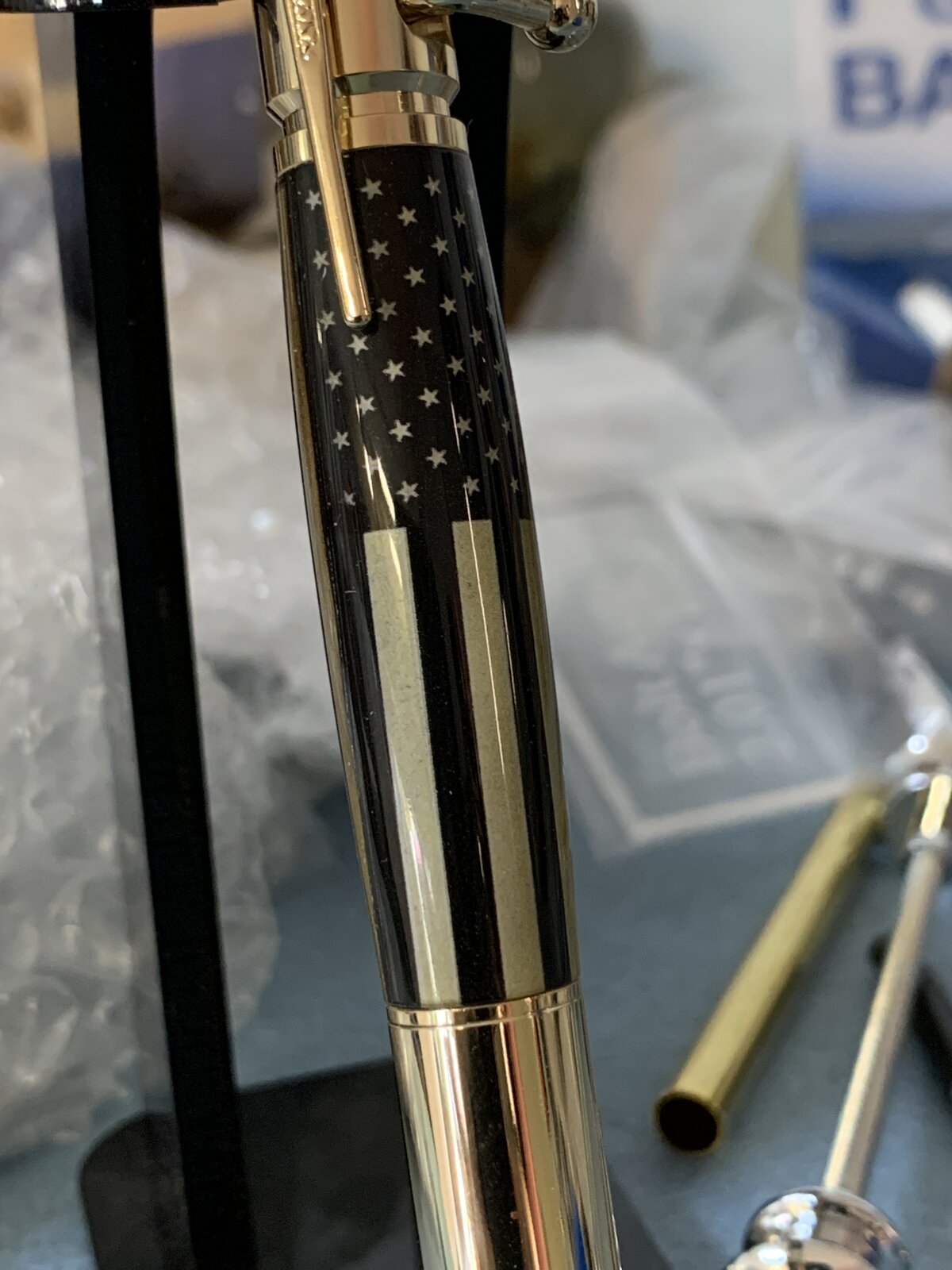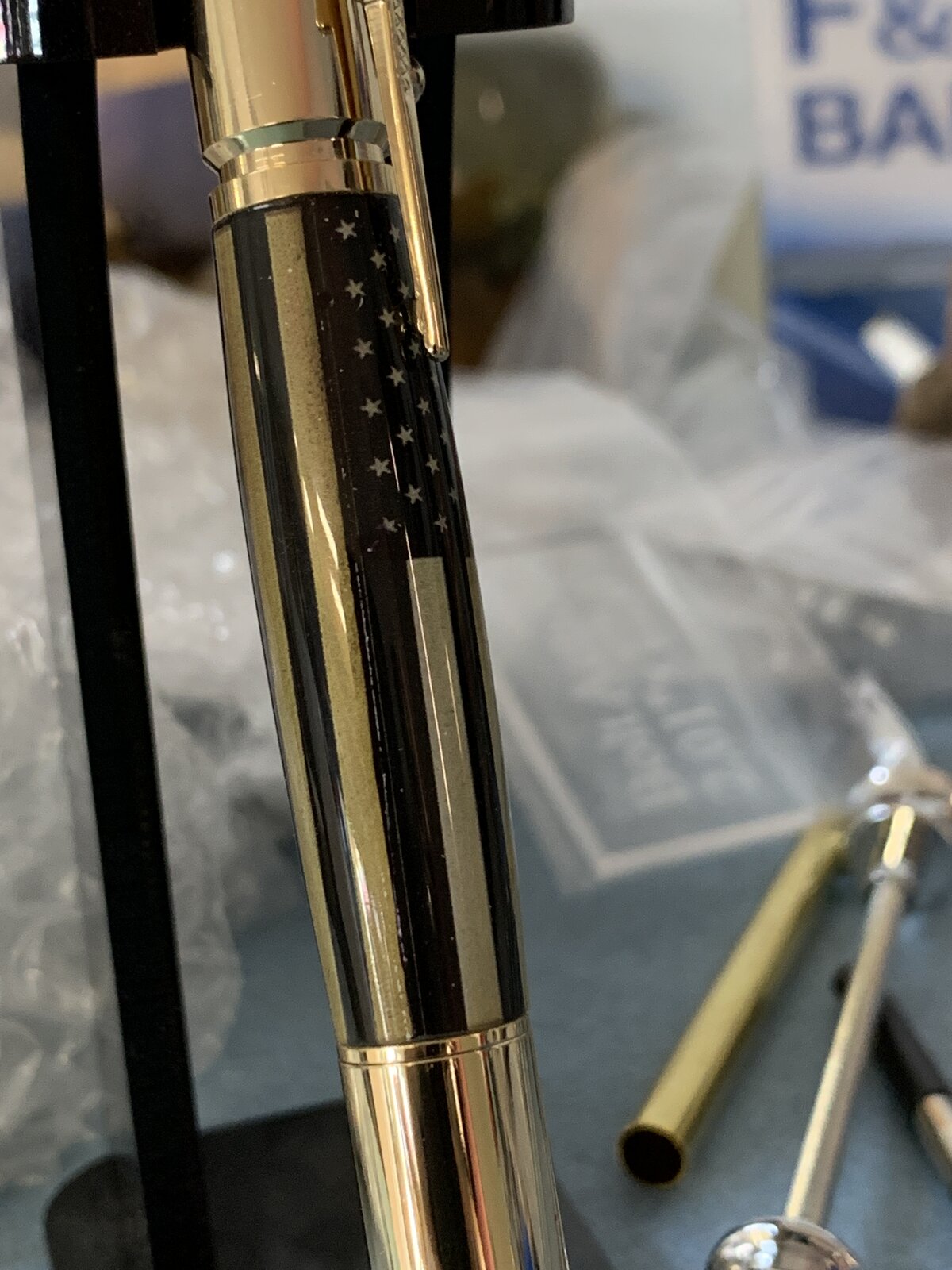 time and over the last few months he asked me if I was interested in making him a "subdued" flag pen. Honestly, I had no clue what a "Subdued" flag was until he showed me a patch on his uniform.