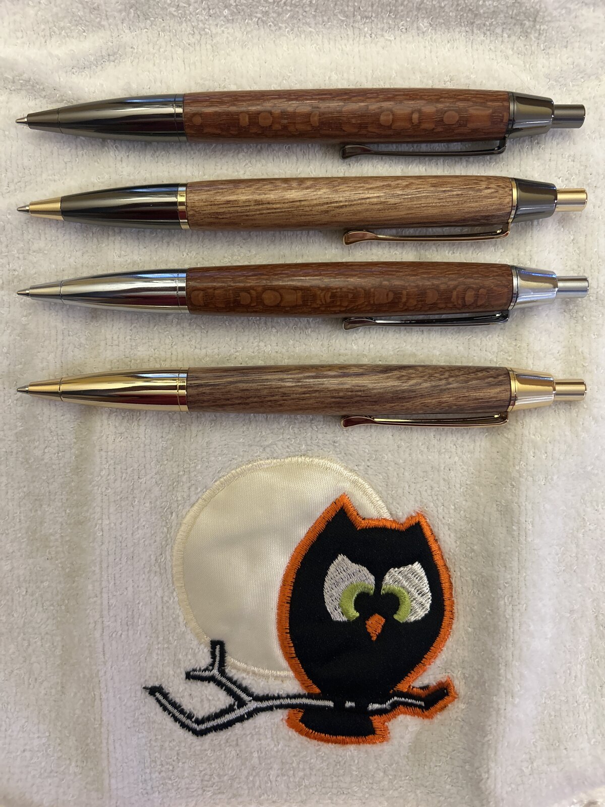 I turned 8 or so of my slimlines and grabbed a few Devin Click pen kits to try out. Used Leopardwood, finished with Pens Plus. Still learning but had time tonight try. Don't have the display stand yet, I will get there