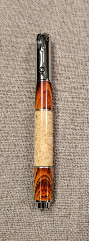 Finally made my first pen in 2018. Shop time has been rather limited with all of the diaper changing. Been spending the little remaining time messing with stabilizing wood. Anyway, here you have it, an Artisan Zen in box elder burl and Cocobolo (from the scrap bin).