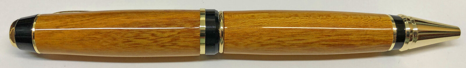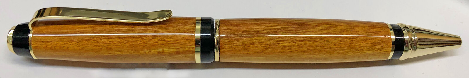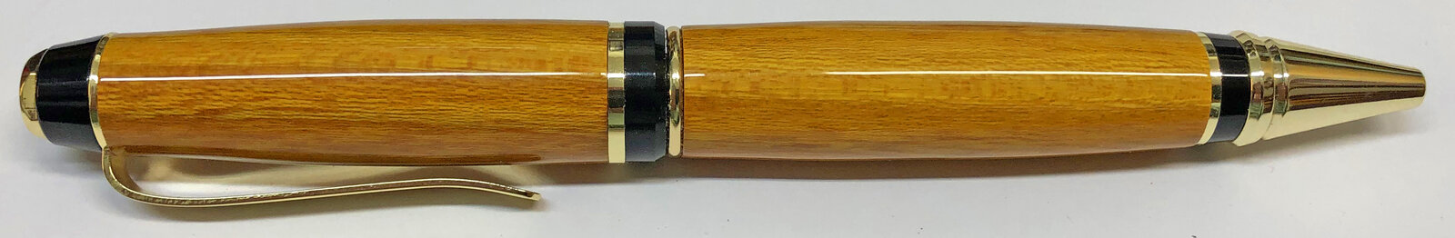 Well, it's a disappointment. This is the first time I've turned Osage Orange. It turned much easier than I thought it would as Hedge Apple has a reputation about being really hard. When I assembled it (Gold Cigar kit) I noticed a dent, chip, or something. I sure wish it would have been on the opposite side so I could have covered it with the clip. (see the middle picture).