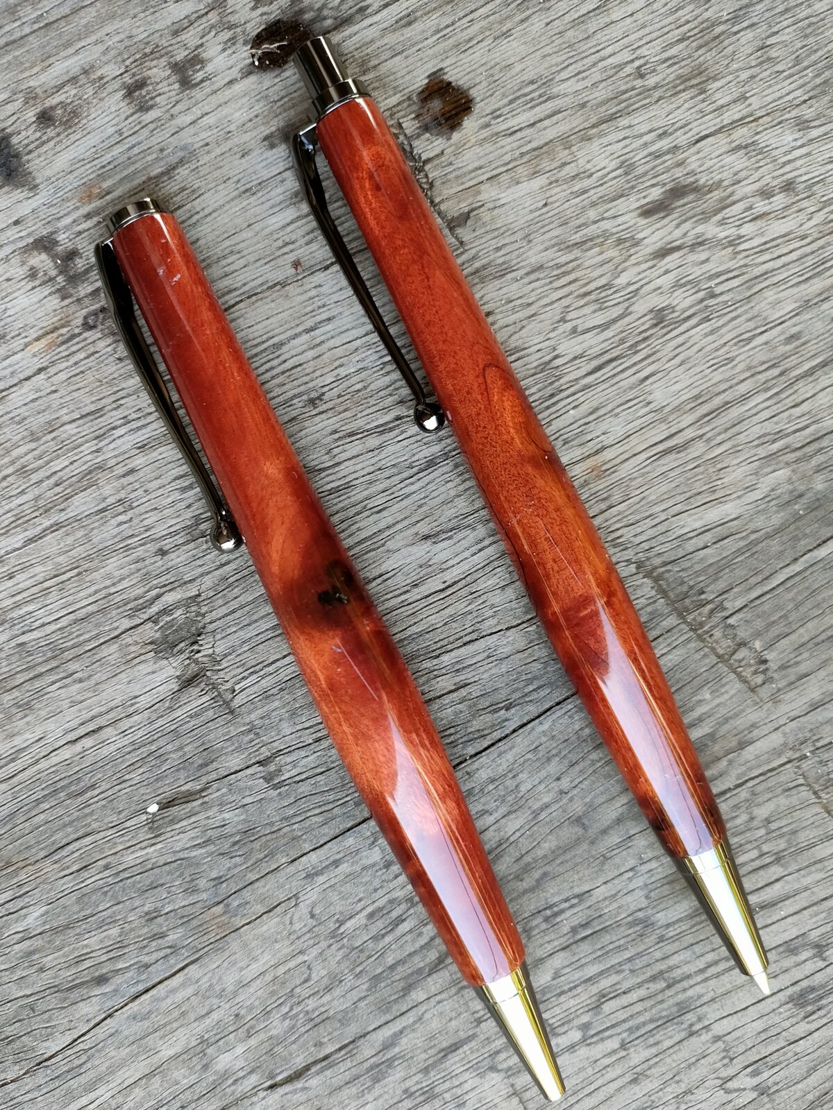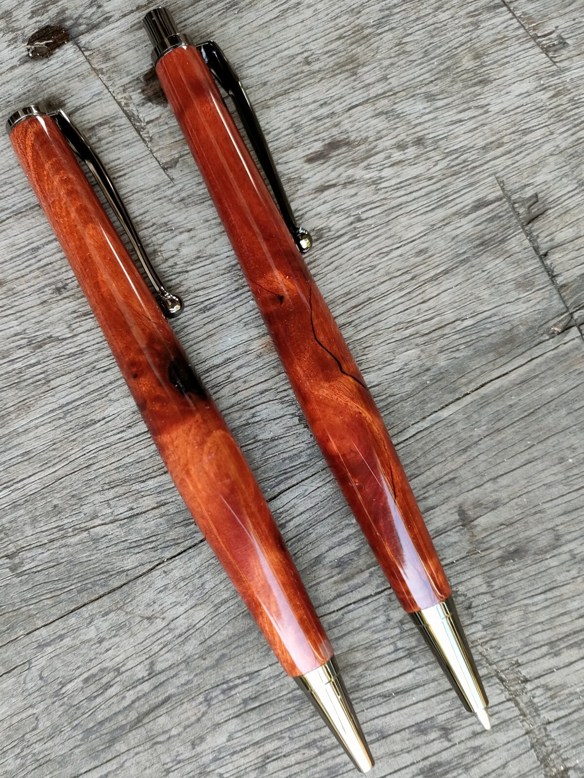 Thought we'd share pics of our very first PEN & PENCIL SET in local indigenous RED/PINK IVORY (BERCHEMIA ZEYHERI, RAHMNUS ZEYHERI - take Your pick !!) with GUN METAL Coachwork