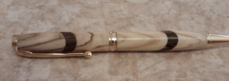 This is the first pen that I sold. I really like putting the rings in the wood. The rings are an ebony. The rest of the pen was part of a grab bag of blanks from Woodcraft. It was a going away gift for the boss of my commander. He really likes it.