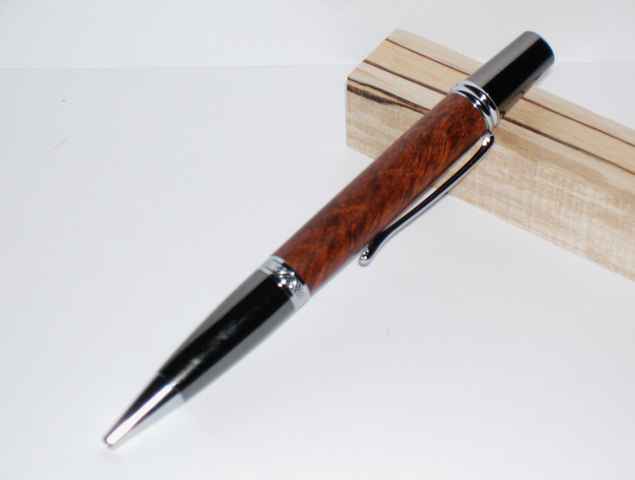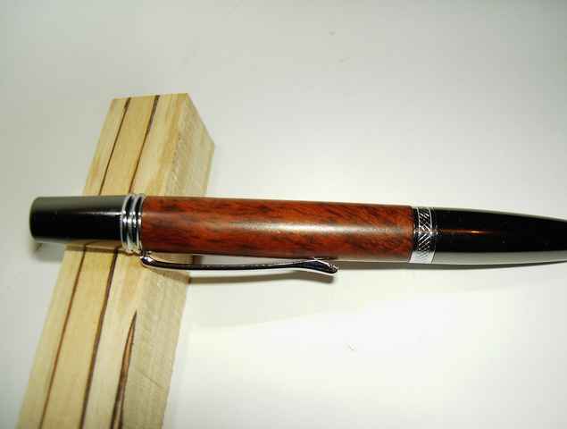 My first pen was made with the beautiful Old Olive root, #22 on my list. The second one was also a easy choice, as this timber, Flame Wood, #28 on my list is one a the few timbers that I have a very limited quantity off, and I will possible never have it again, as every attempt to identify it didn't succeed, and I only had the tree butt left on the ground to cut (3' tall) after the rest of the tree was cut by the previous property owner, or someone under his/her directions/orders many years before the new people took over. This tree was originally planted in the center of the front garden, and we know that the people that planted it, where migrants from overseas.