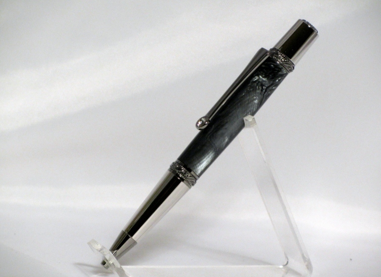 Pen is a Napoleon with black titanium and rhodium.