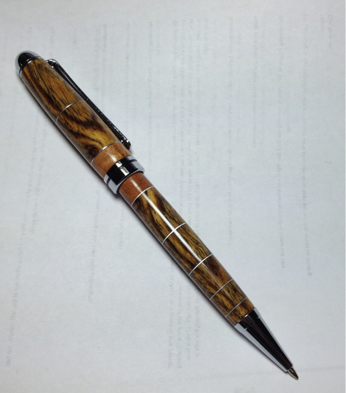 First time trying my hand at segmenting. I tried one glue up before this that was a complete disaster so I started something new with this. Kit is a Round Top Euro from Rockler. Wood is Bocote and Cherry with aluminum. I learned a lot while doing this and look forward to doing more.