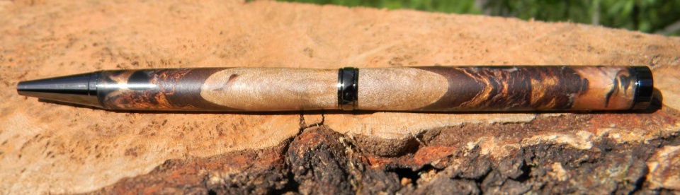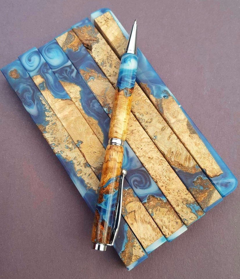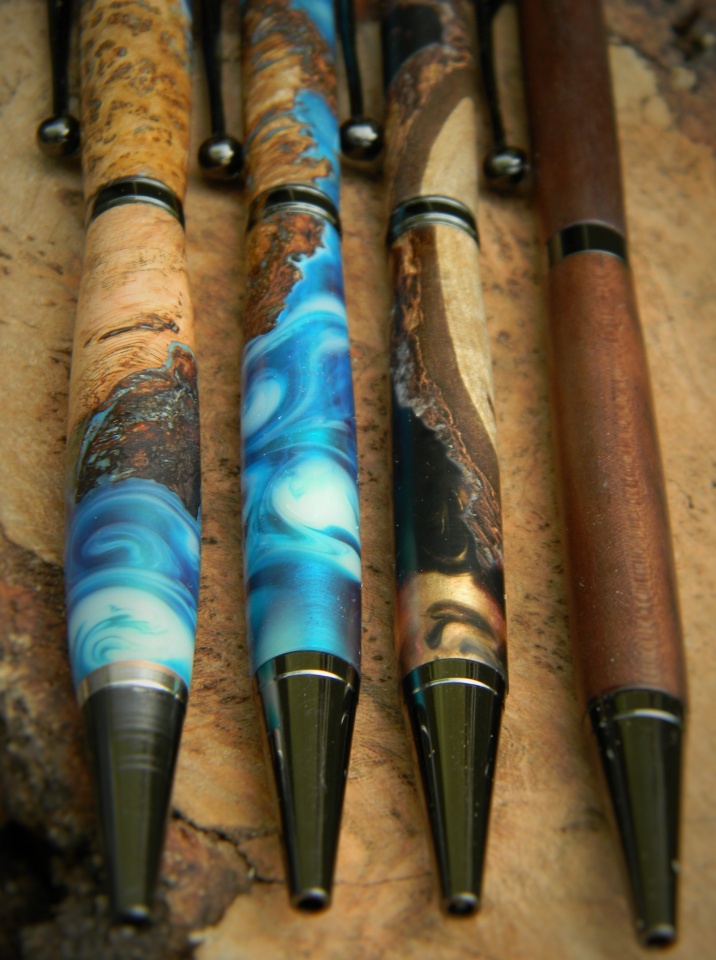 The combination of the materials was very well chosen, I imagine the densities of the materials were different so very well done on the evenness of the pens, I can't stop looking at those attractive swirls. Well done.