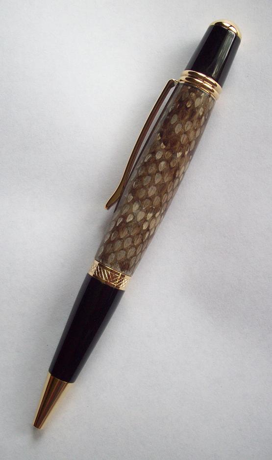Nothing new, but my first Sierra from my own snake skin cast. Thanks to all that post here. It helped me from start to finish, with setting up the pressure pot, preping and glueing the snake skins, and finally the pouring, turning and finishing of the blank.