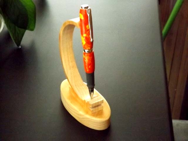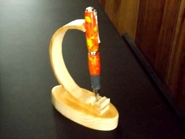And I'm not very happy with it at all. During the assembly process it broke in a couple of places and the rubber grip I did not get on there right but it fit, It is harder to get the nib on the pen because all you have there is the rubber grip and the pen brass tube so it can bend easy. I think that's what happened and the edge where the center ring is chipped a little bit. I'm hoping I can fix that some how but it's not all that noticeable unless you look close enough. I doubt if I will do another one in acrylic. The acrylic on this pen is called Inferno... I hope Sis likes it... Any comments are welcome.. Fay,,, Oh yes,, I used the micro fiber sanding discs for the first time and I'm very happy with that. I enjoyed watching the shine come up as I used them.