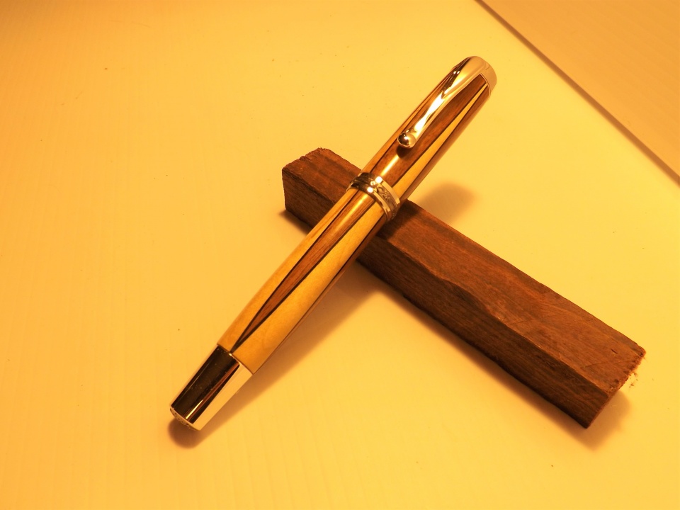 My first try at a Statesman kit, it was also my first shot at a pool cue blank. I learned that I should have turned the blank around and had the larger portion of walnut on the bottom. The curve on the top end brought the points to a skewed end. It has a learning curve, still isn't bad, just could have been better.