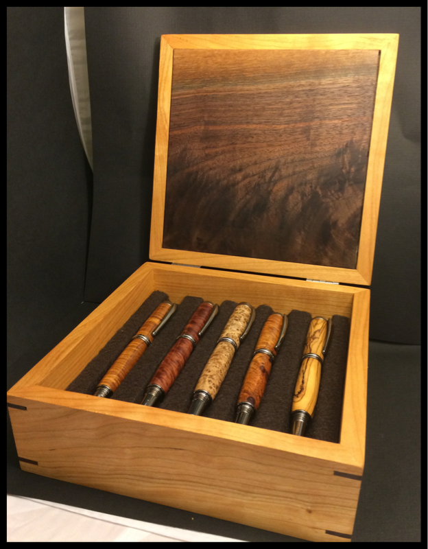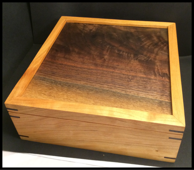 This is made from local cherry and walnut. I will be making more of these with different woods and techniques. This one utilizes splined miter joints.