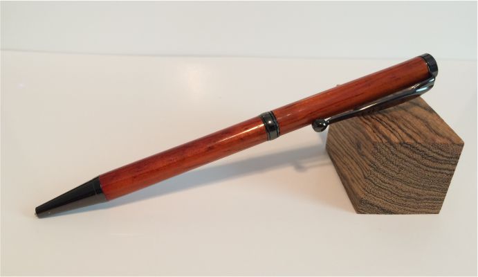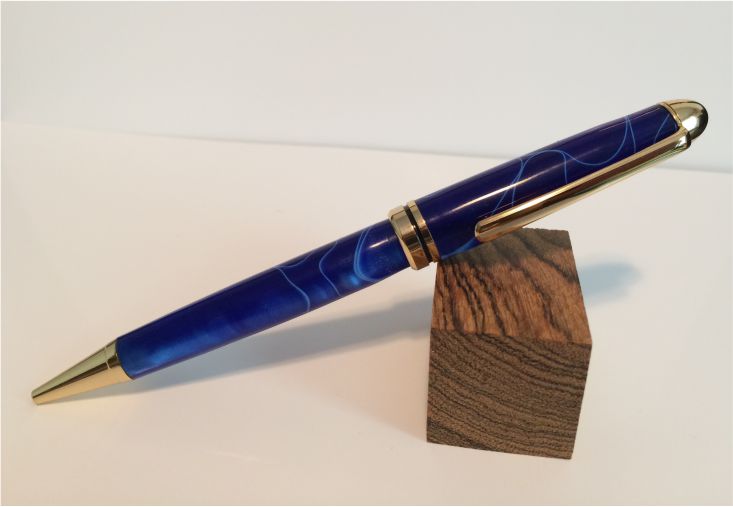 This is my first 2 pens. I got my mandrel this morning and couldn't wait. The first is a designer pen with a blue acrylic blank and the second is a slim line with a padauk blank. I can say without a doubt I'm hooked. :biggrin: