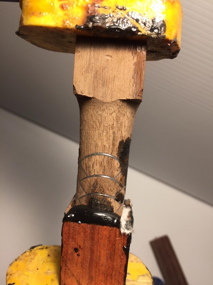 This jig can be made with two V cut blocks which will capture and hold the blank for cutting. Clamping sounds like a good idea.