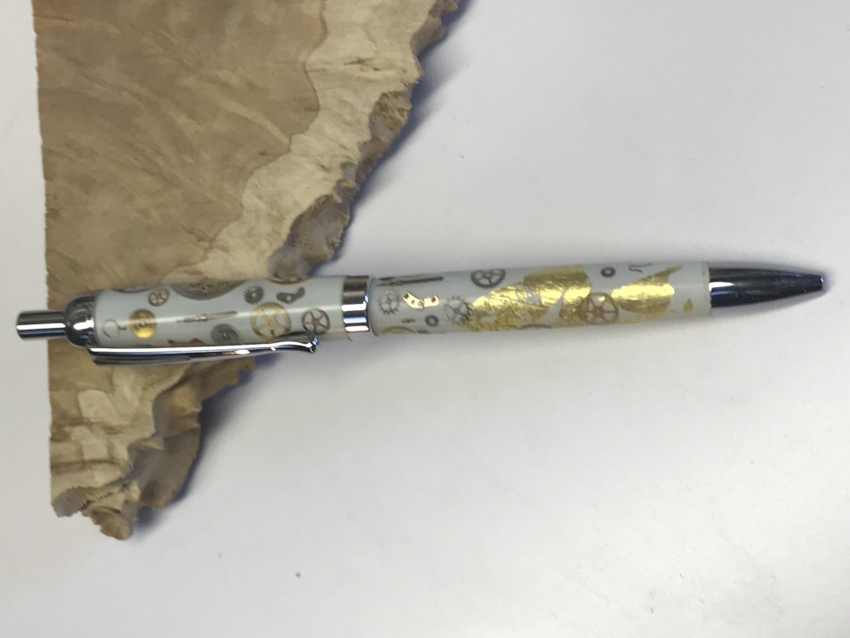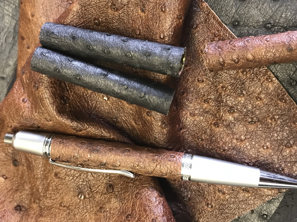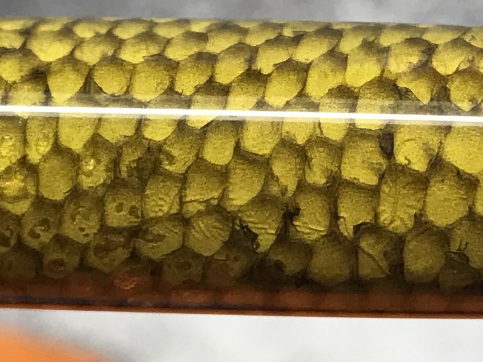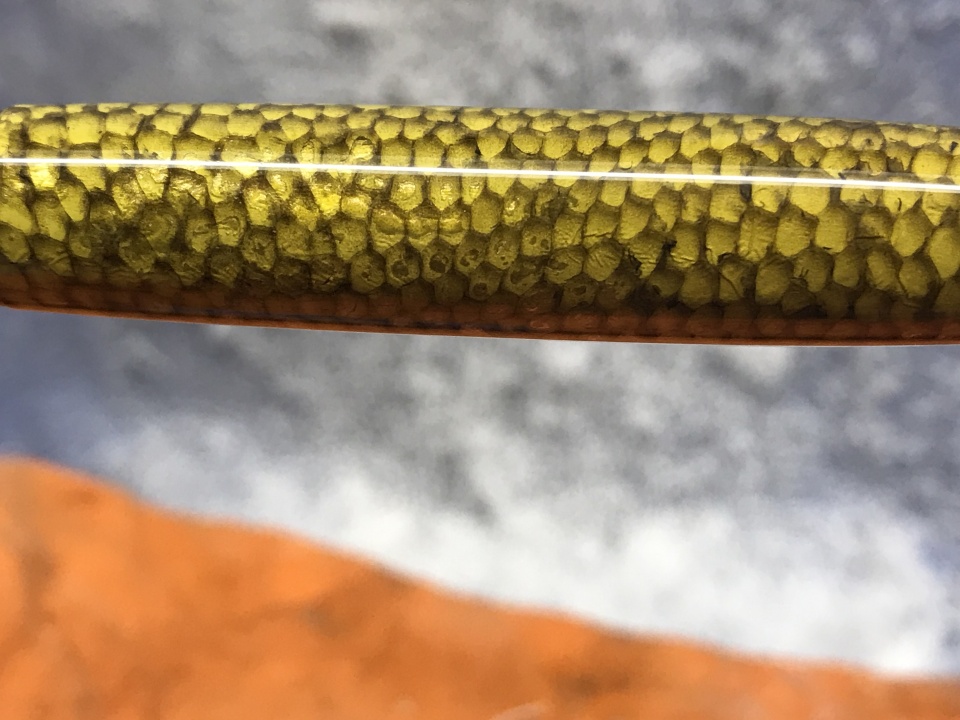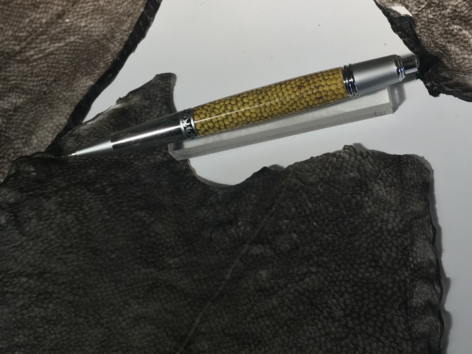 This Sierra click is made with New Zealand Flounder skin cast in Royal Palm resin , finished with Zona paper
